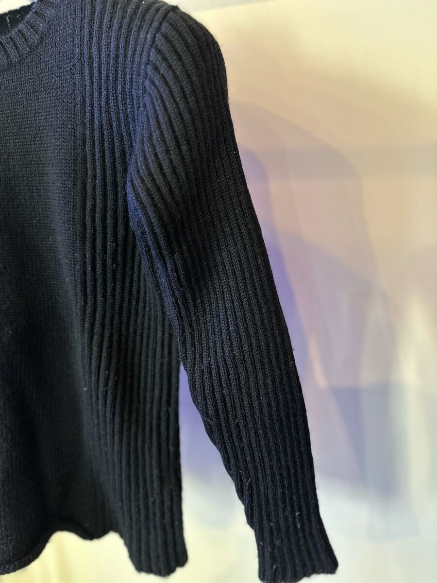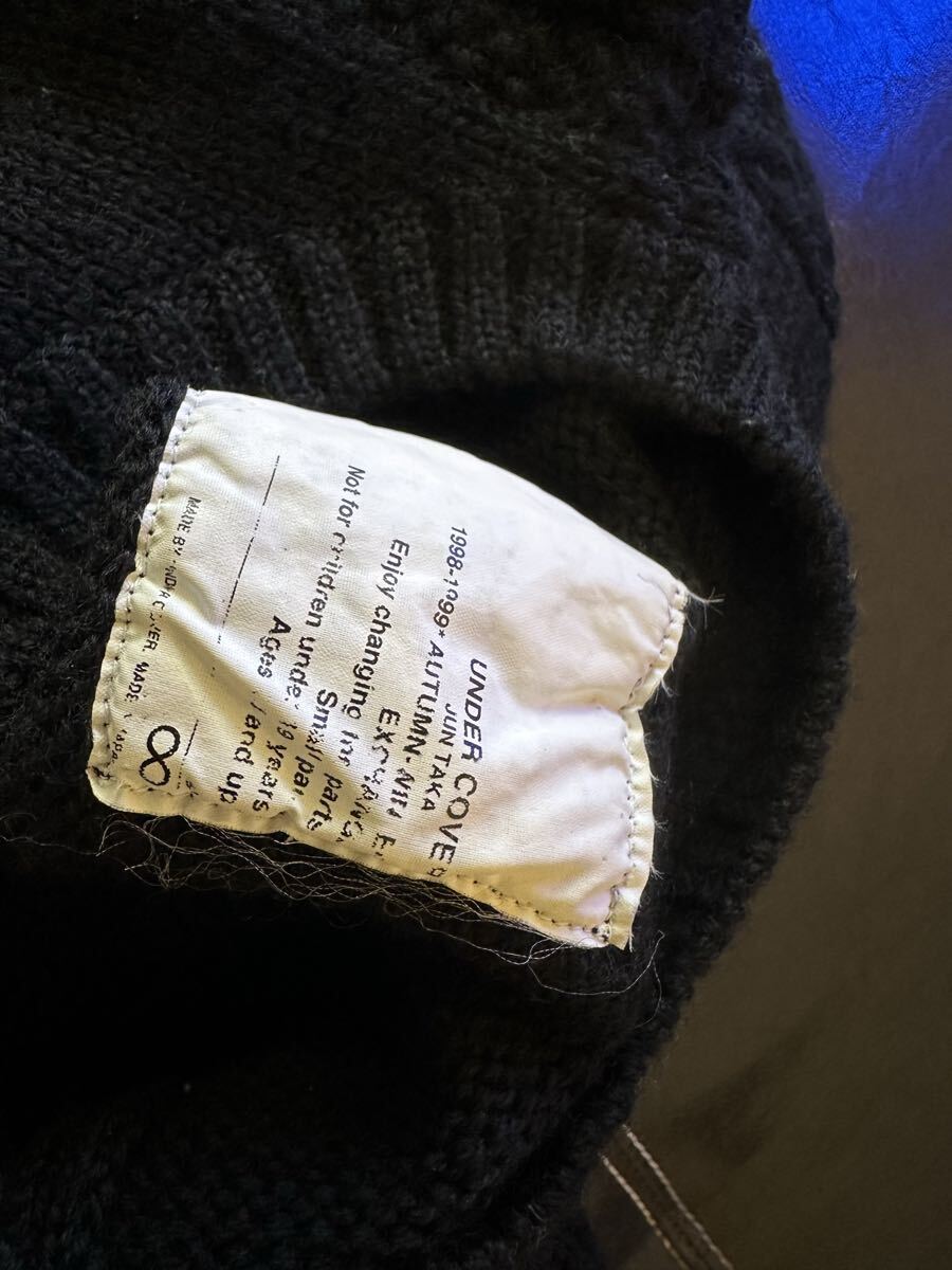 発売当時、原宿のアンダーカバーにて購入いたしました。同時は、このニットを買う為に、何時間も並んで買った事を覚えています。何度か着用して、クリーニングして、現在に至るまで大切に保管してまいりました。虫食いなどは、ありません。素材が、ウール100%の為、多少の毛玉は、あります。破れやほつれなどは、無いと思います。30年近い前の商品の割には、とても良い状態だと思います。是非この機会にいかがですか。