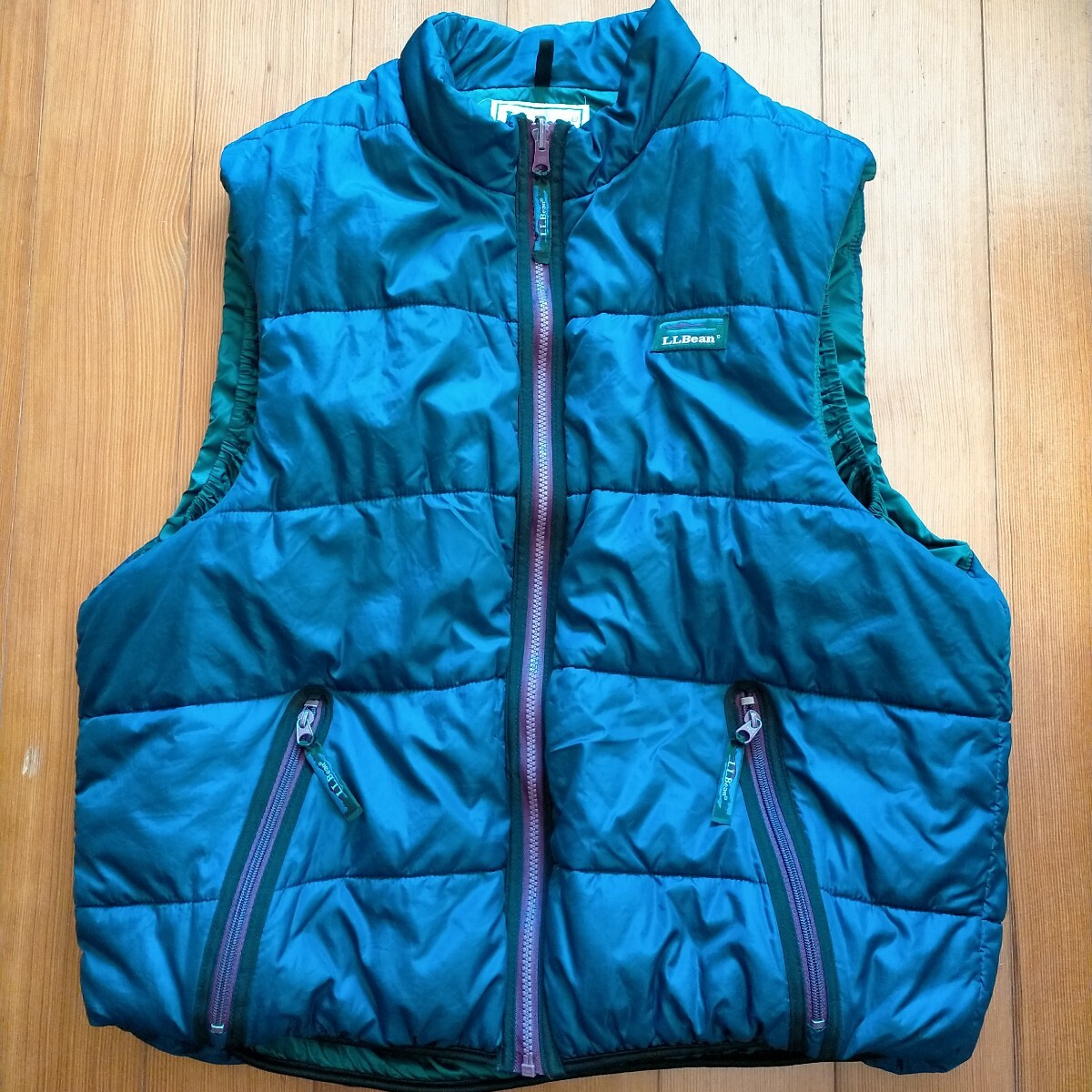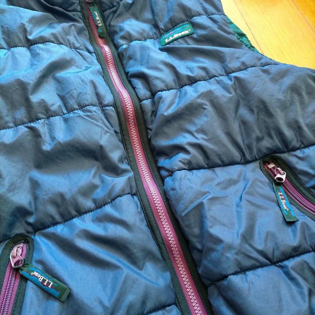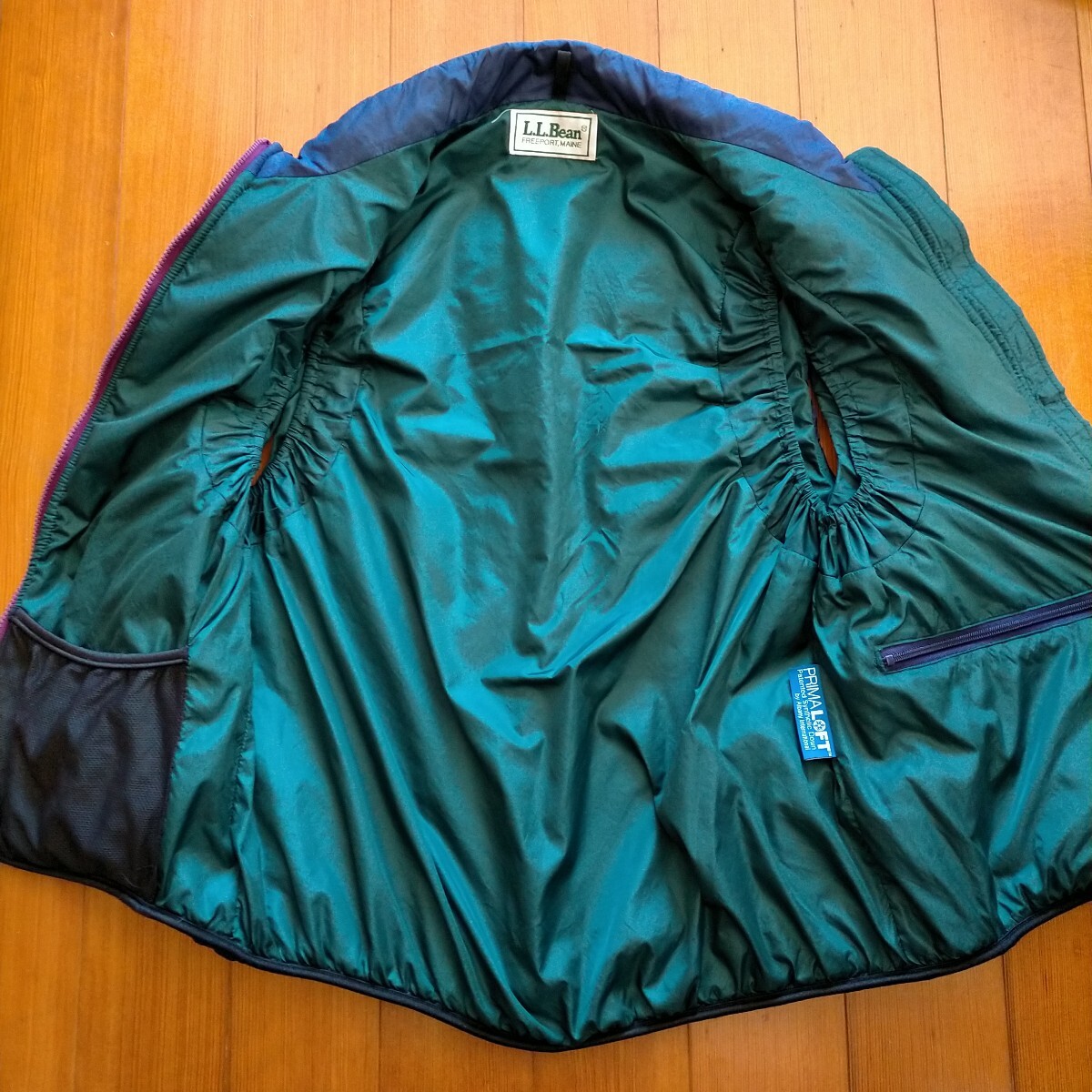 90s LL BEAN プリマロフト ダウンベスト メンズ エルエル ビーン USA製 パープル×グリーン XL XXL