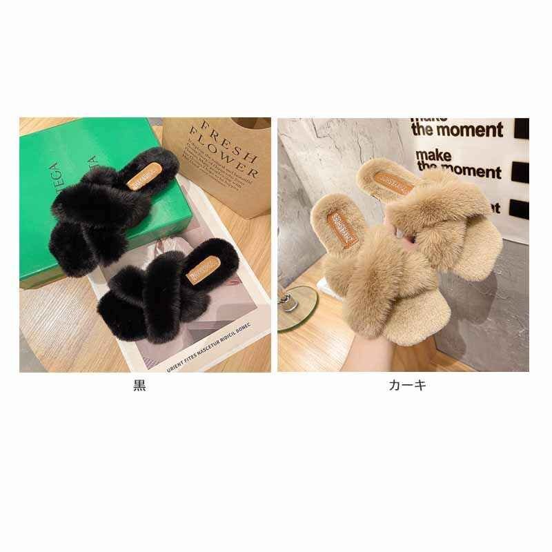 ファーサンダル ふわふわ ファー スリッパ サンダル ルームシューズ 室内 35 黒