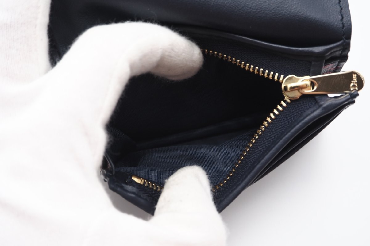 ★3日以内返品可★ Christian Dior クリスチャン ディオール I LOVE PARIS レディディオール コンパクトウォレット ネイビー レッド 財布