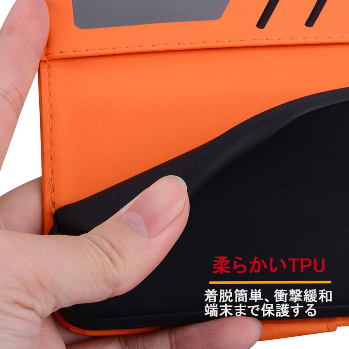 【耐衝撃性】耐熱性と柔軟性を誇る上質なPUレザーで作られ、手触り良い、落下時の衝撃を効率的よく吸収できるようにケースの各コナーの裏側が設計されています。丈夫でほど良い厚みで、落としてもスマホをきちんとお守れます。