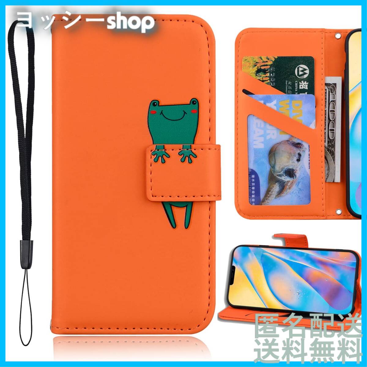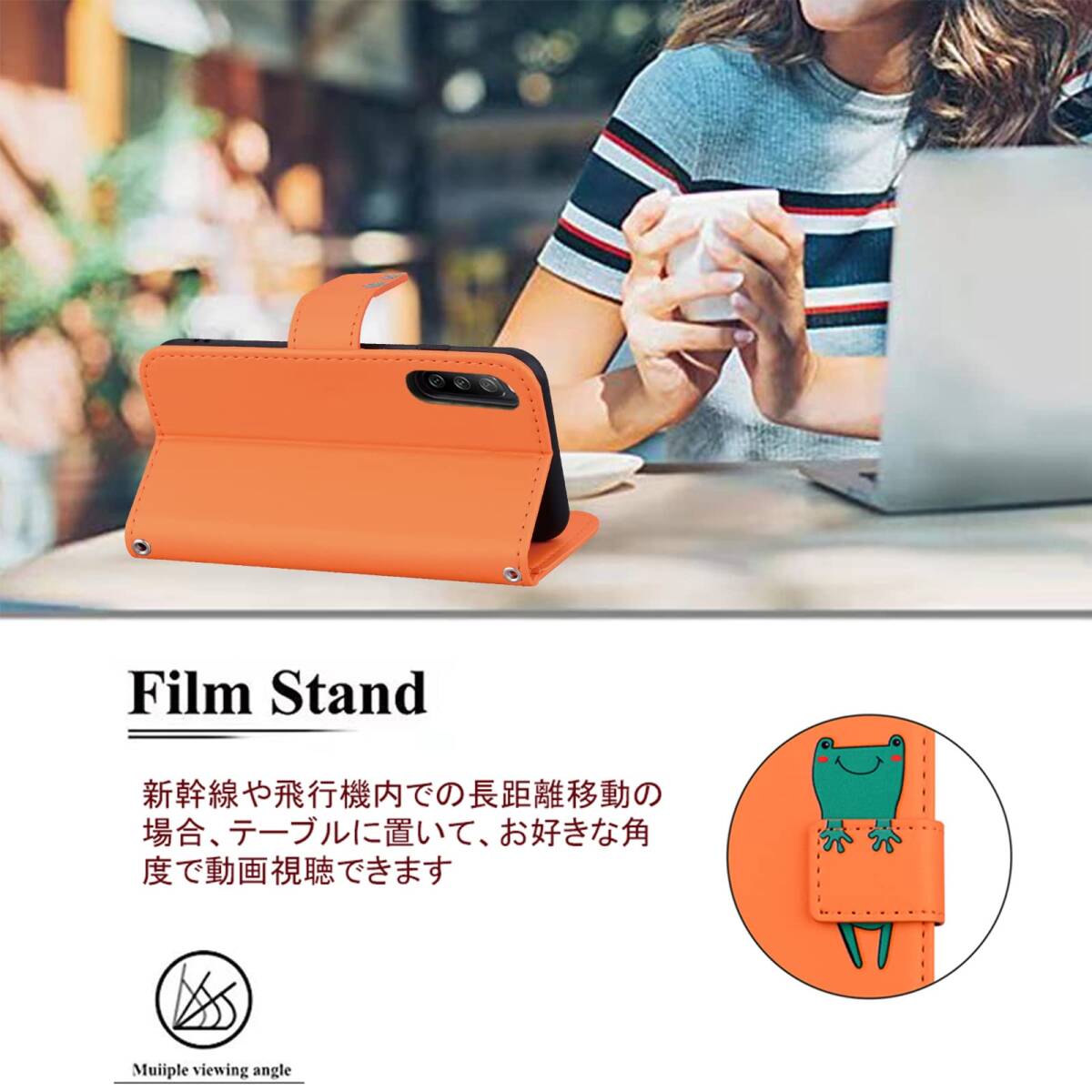 Xperia 10 V ケース手帳型 SOG11 docomo SO-52D SIMフリー SoftBank 楽天モバイル 全対応 xperia10V case マーク5 手帳 カバー スマホケース エクスペリア10 V ケース 携帯ケース PUレザー カード収納 ベルトマグネット スタンド機能 カエル 動物柄 薄型 防水(Sony Xperia 10 V SO-52D SOG 対応) オレンジ