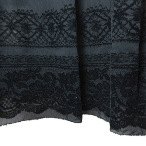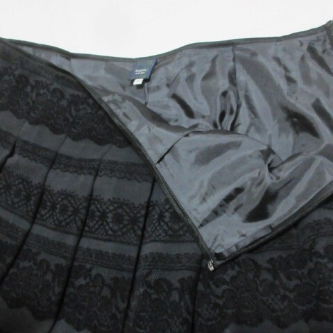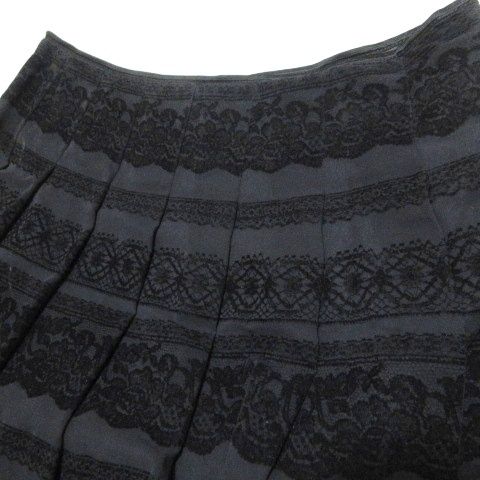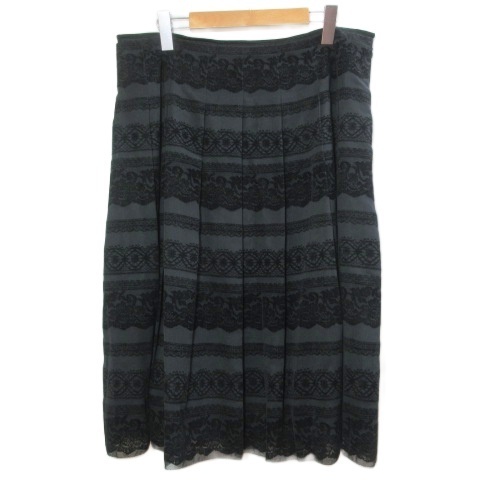 キース KEITH 美品 大きいサイズ レースフロッキースカート レースプリント ひざ丈 タックフレア 48 5L相当 黒 ブラック /X レディース