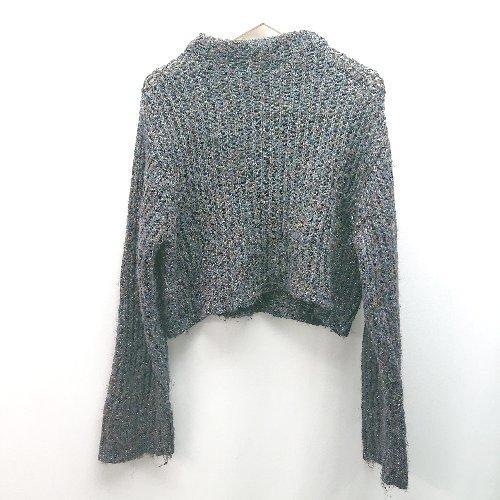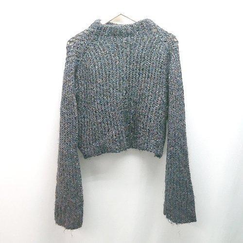 ◇ JEANASiS モックネック ショート丈 ラメ感 透け感あり 長袖 セーター サイズFREE グレー系 レディース E