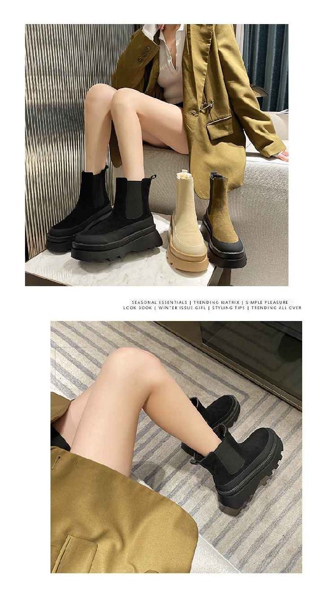 ブーツ ショート 裏ボア 美脚 脚長 サイドゴア 裏起毛 滑り止め 厚底 5cm 39 ダークグリーン(裏起毛)