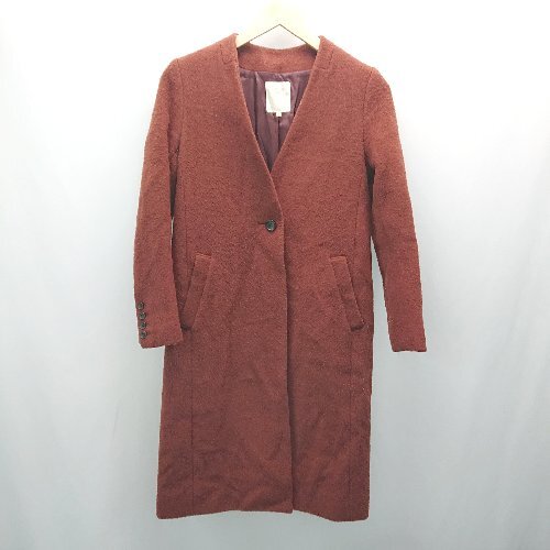 ◇ BEAMS ビームス シンプル 無地 カジュアル きれいめ ゆったりめ 長袖 コート サイズS レッド レディース E