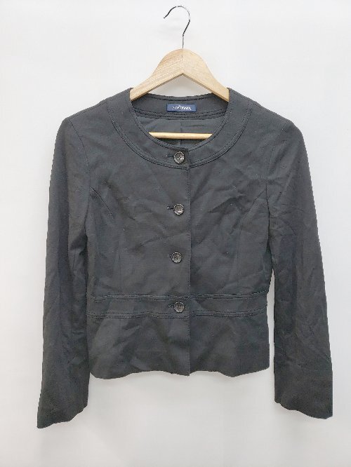 ◇ NEWYORKER ニューヨーカー ノーカラー 無地 長袖 ブルゾン ジャンパー サイズ9AR ブラック レディース P