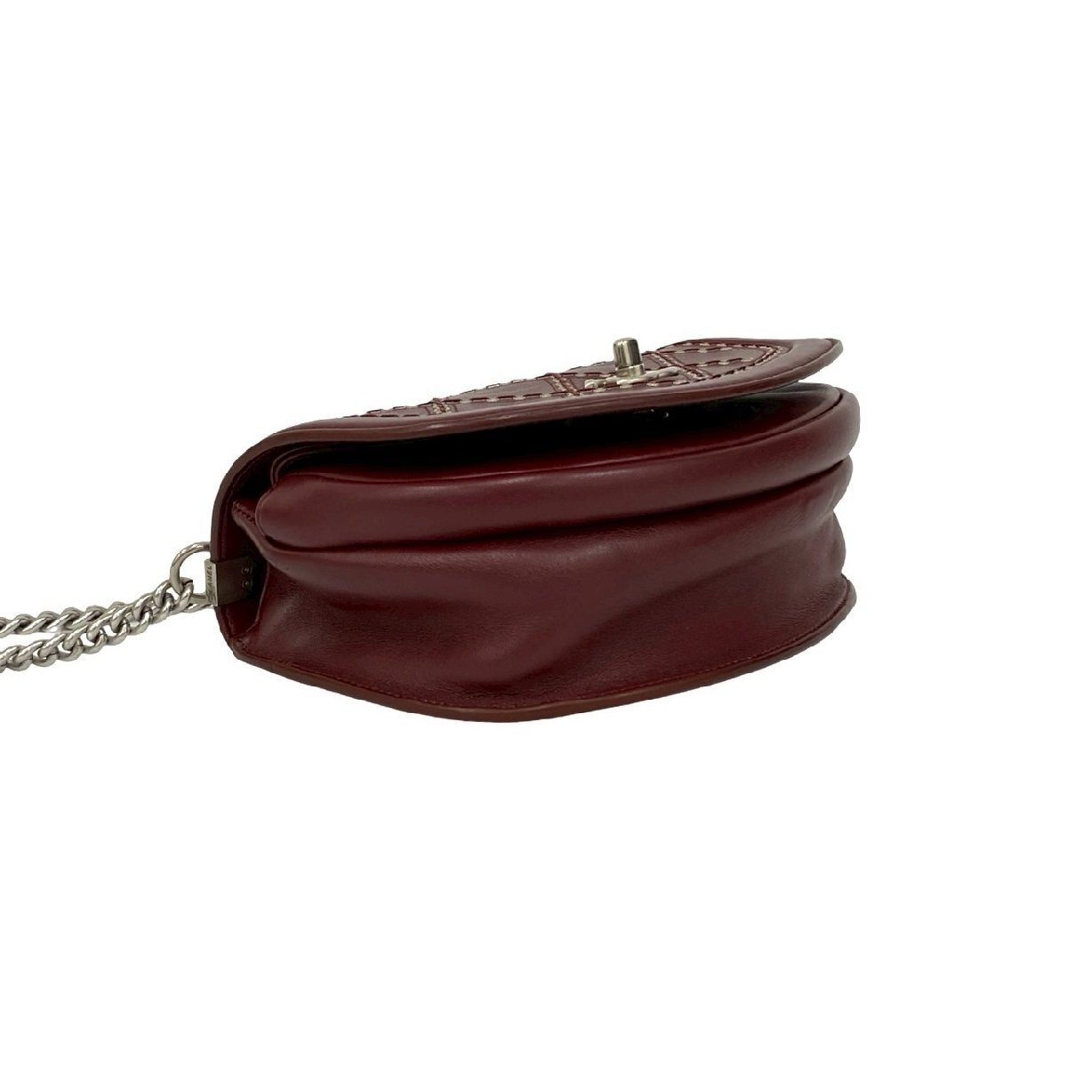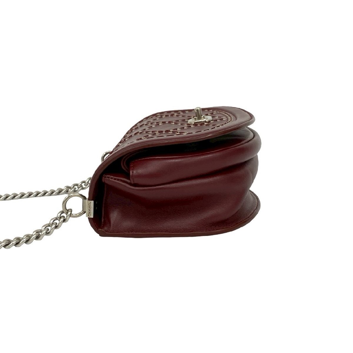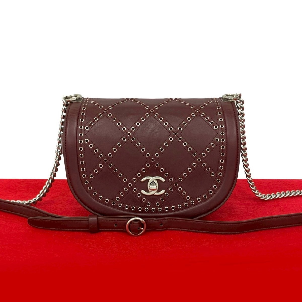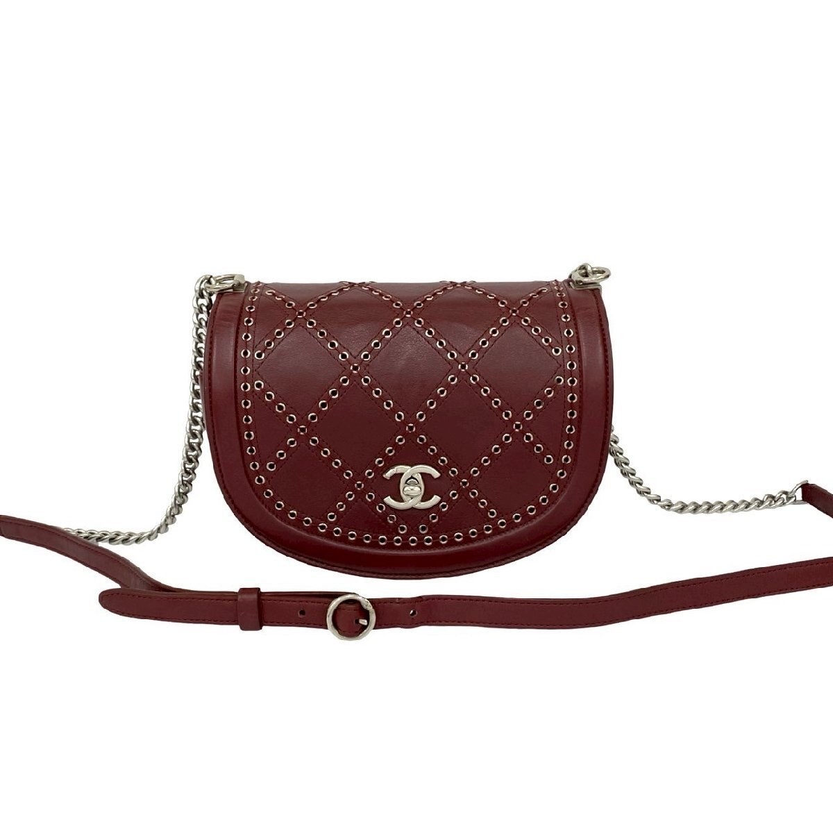 極 美品 シール有 24番台 CHANEL シャネル ココアイレット スタッズ レザー 本革 チェーン ショルダーバッグ ポシェット ボルドー 21650