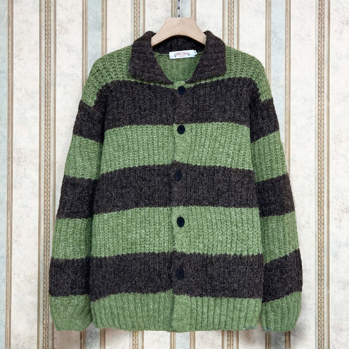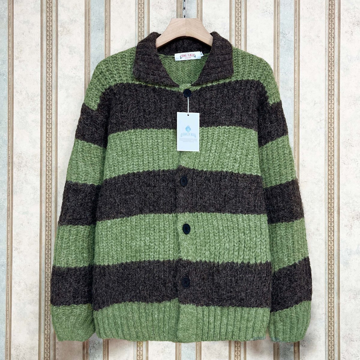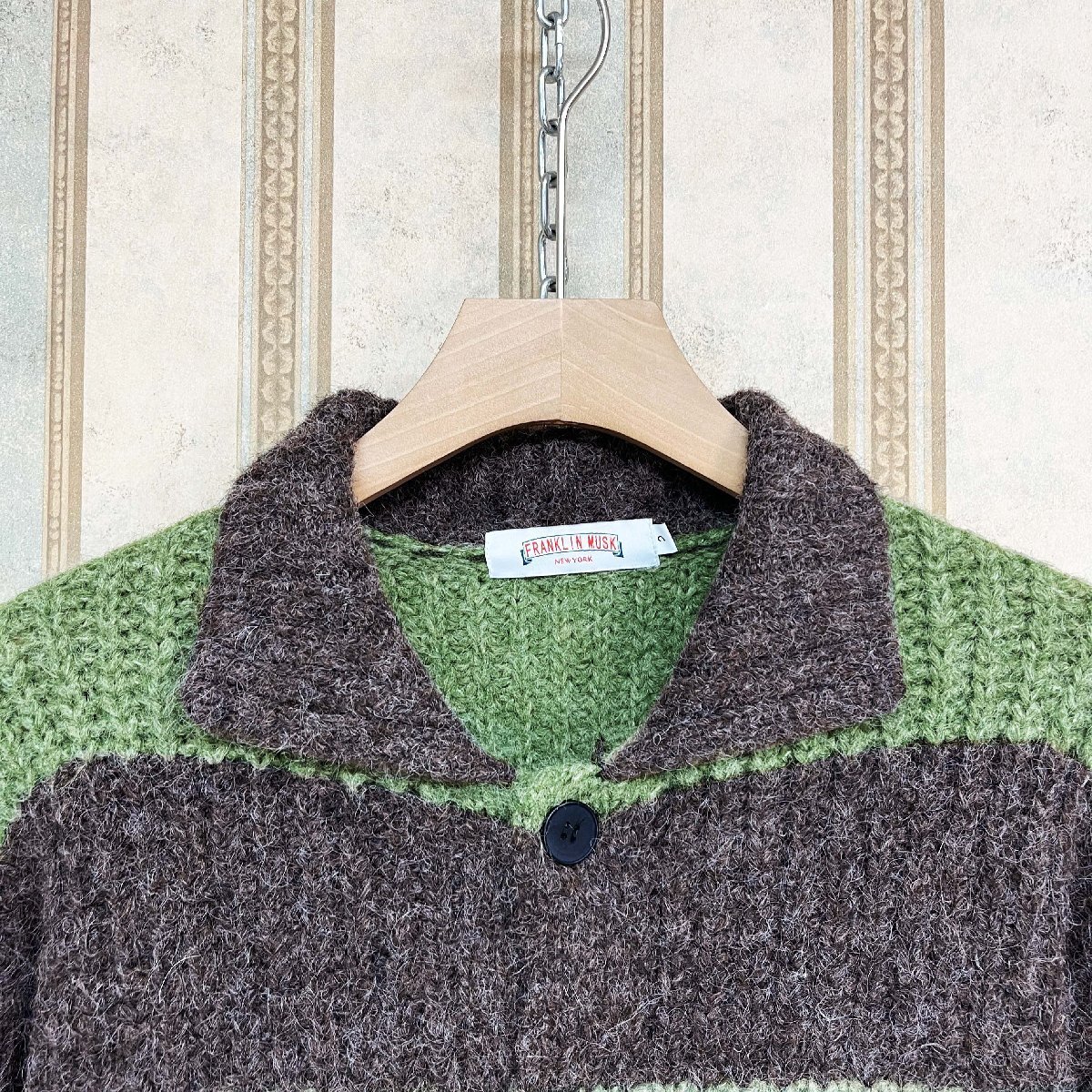 人気 定価5万 FRANKLIN MUSK・アメリカ・ニューヨーク発 カーディガン ウール混 ニット 保温 ストライプ柄 折り襟 セーター 長袖 普段着 秋冬 サイズ3