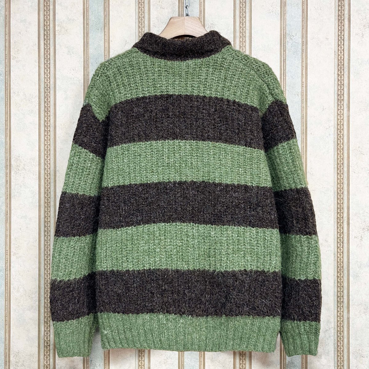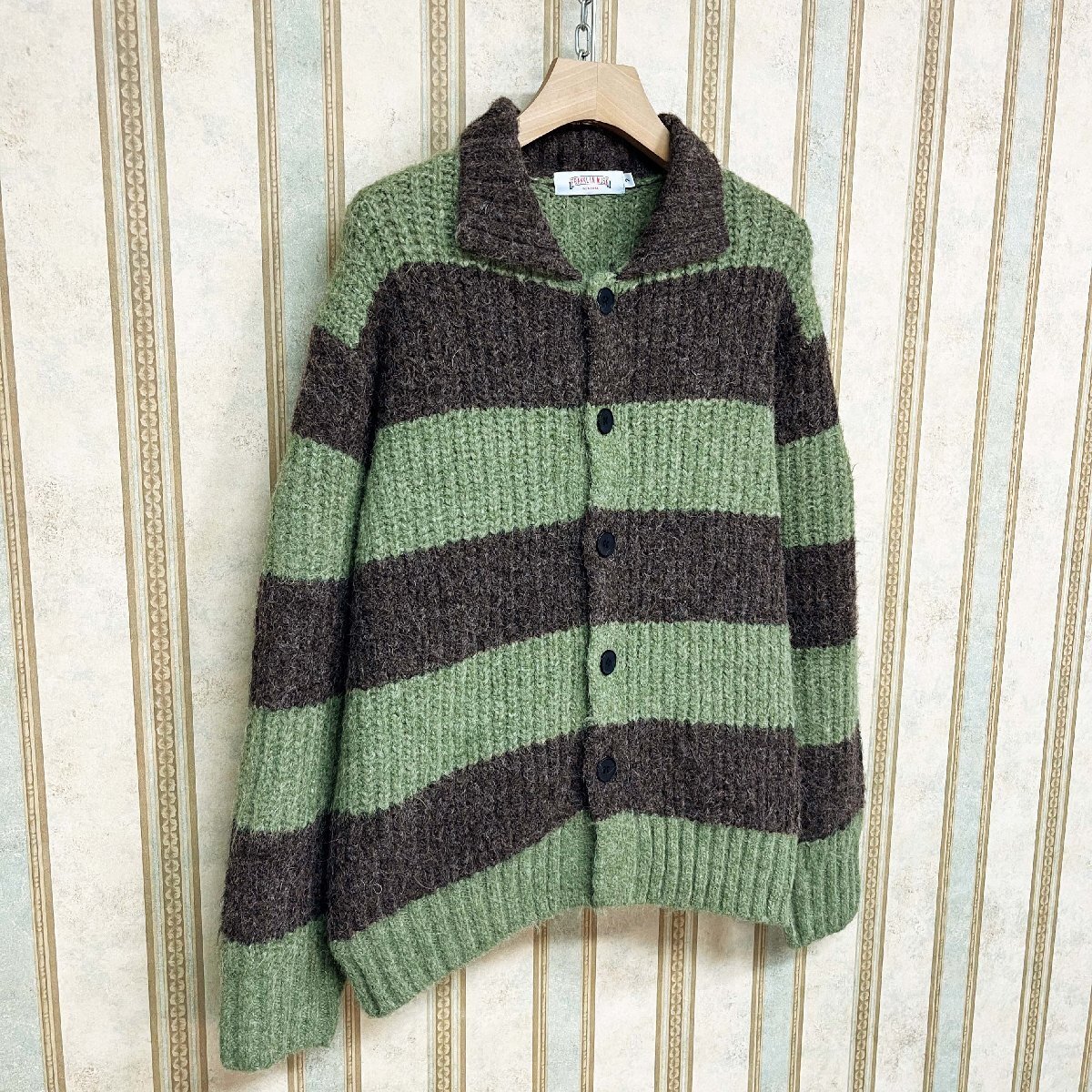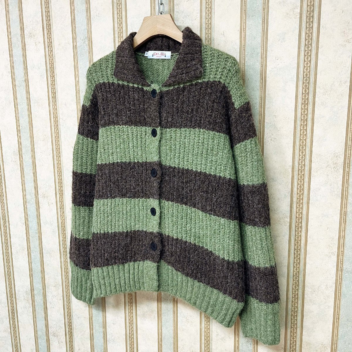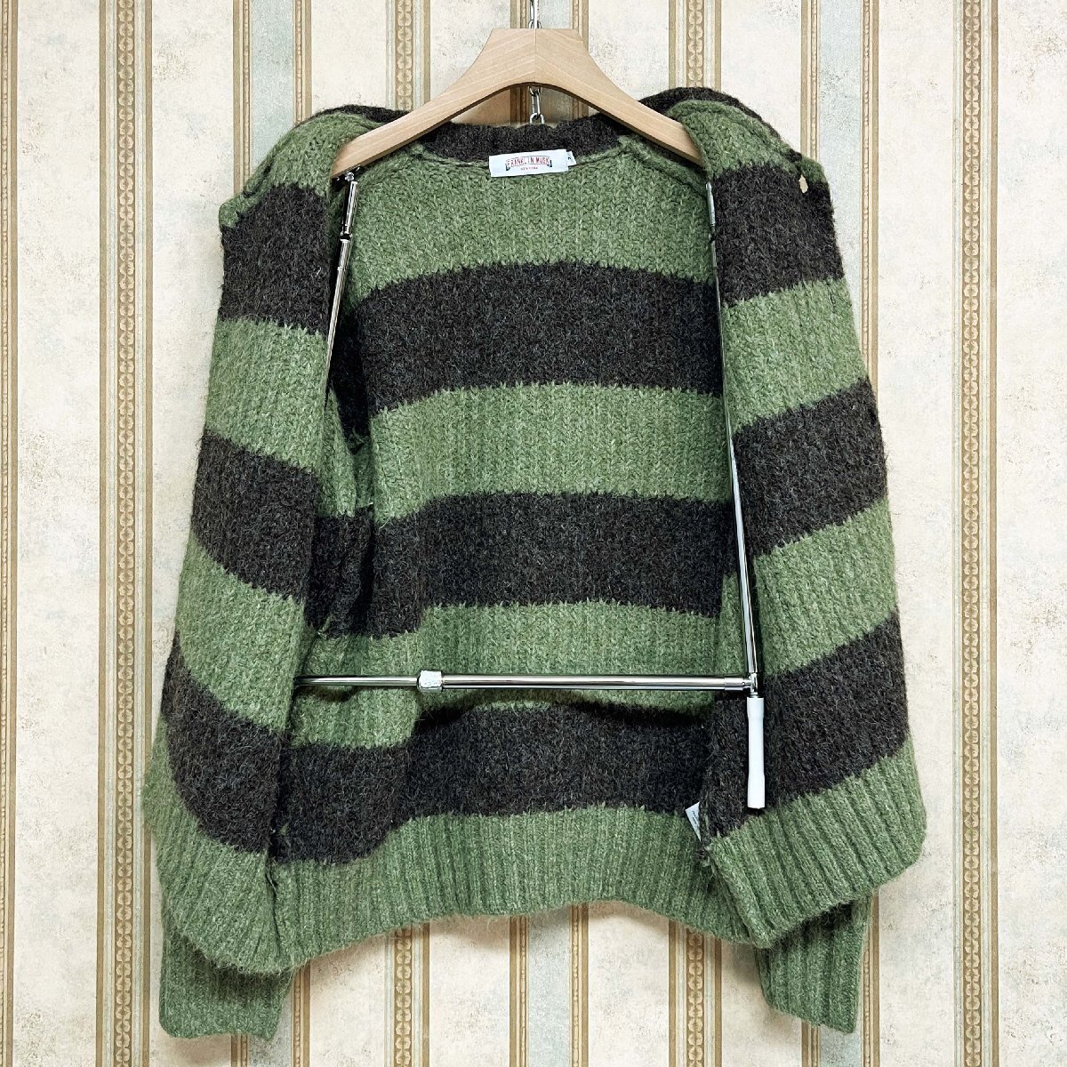 人気 定価5万 FRANKLIN MUSK・アメリカ・ニューヨーク発 カーディガン ウール混 ニット 保温 ストライプ柄 折り襟 セーター 長袖 普段着 秋冬 サイズ3