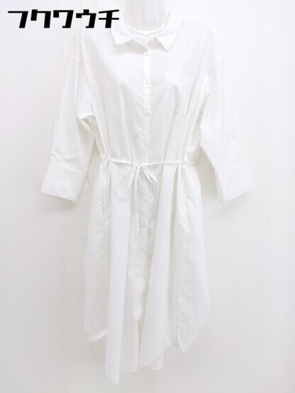 ◇ ◎ nano universe フロントボタン ラウンドヘム 長袖 膝下丈 シャツ ワンピース サイズ F ホワイト レディース