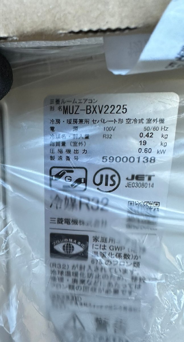 【MITSUBISHI(三菱電機) ルームエアコン 霧ヶ峰 室外機のみ MUZ-BXV2225】