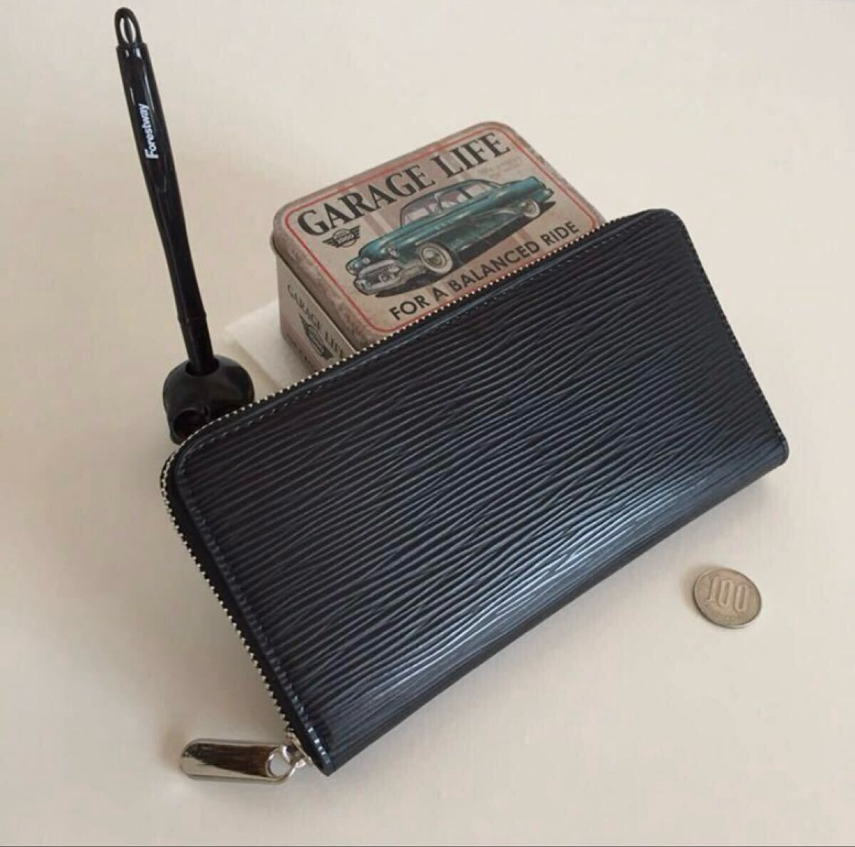 ★ラウンドファスナーで開閉するタイプの財布。シンプルで無駄のないそのデザインは、エピの上質な素材感を最大限に活かしながら気軽に使える実用性の高さが特徴的です。