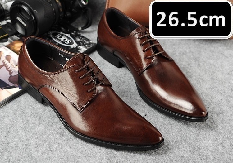 メンズ ビジネス レザー シューズ 本革 紐 ブラウン サイズ 26.5cm 革靴 靴 カジュアル 屈曲性 通勤 軽量 新品 【apa-163】