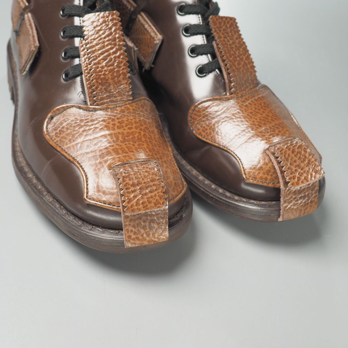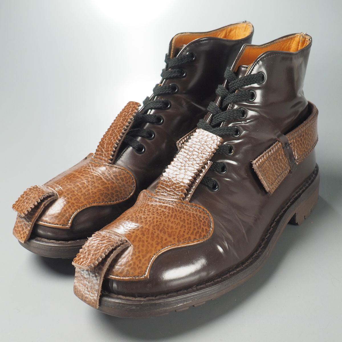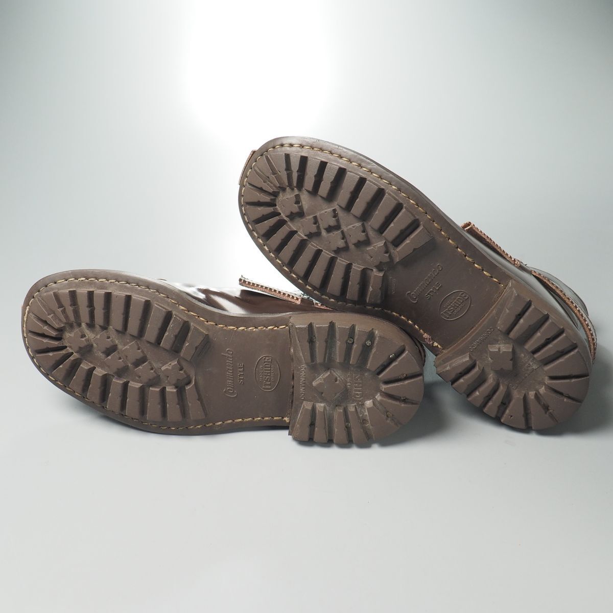 英国のシューズデザイナー、ジョン・ムーア氏の名を冠したシューズブランド「ジョンムーア/JOHN MOORE」の一足です。 代表作のコンバットブーツ。 アッパーには茶のガラス革とシボ革を用い構成、唯一無二の個性的なデザインが非常に魅力的です。 アウトソールはイッツシェイド社のコマンドソールが装着された重厚なダブルソール仕様。 お好きな方・お探しの方はぜひこの機会にご検討ください。 製法:グッドイヤーウェルテッド アウトソール:ラバー ライニング:レザー×キャンバス 生産:イングランド製 ※撮影用のシューキーパーは付属致しません。 ※本物の商品ですのでご安心の上オークションをお楽しみ下さい。 ※タイトル頭の英数字は弊社の管理番号です。 ※ほかにも多数の商品を出品しています。 ※同梱に関しましては「まとめて取引」でのみ対応可能です、その他の方法での同梱対応は出来かねます。 (※商品の特性上、同梱対応出来ない商品もございますので予めご了承下さい。) |