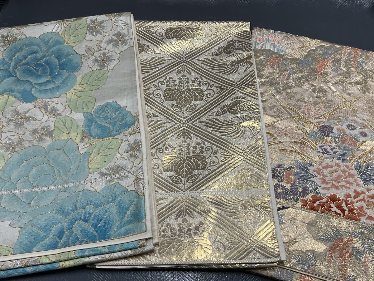 Rose...袋帯 純金二重箔 本金箔24 やまと まとめ売り 3点おまとめセット 正絹 金糸 銀糸 和装 キラキラ 和服 着物