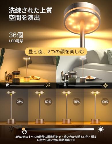 【輝度記憶機能付き&幅広い照明範囲】間接照明 テーブルランプの上部には、直視しても眩しくないを感じよう、柔らかな光を放つ高品質LED電球36個を配置しており、他のスタンドに比べて照明の範囲が広く、使い心地が良いです。強力な性能と、シンプルで洗練された造形で、室内のどこかに置いてもおしゃれな雰囲気を作ります。さらに,このコードレスランプ輝度記憶機能が付いていて、初めて調節した明るさ、消灯後に再び開くと以前の明るさに戻ります、間接照明をはじめて購入する初心者にも優しいテーブルランプです。シンプルでおしゃれなデザインでインテリア性が高く、ルームライトとしてバー、レストランなどの場所にもオススメです!