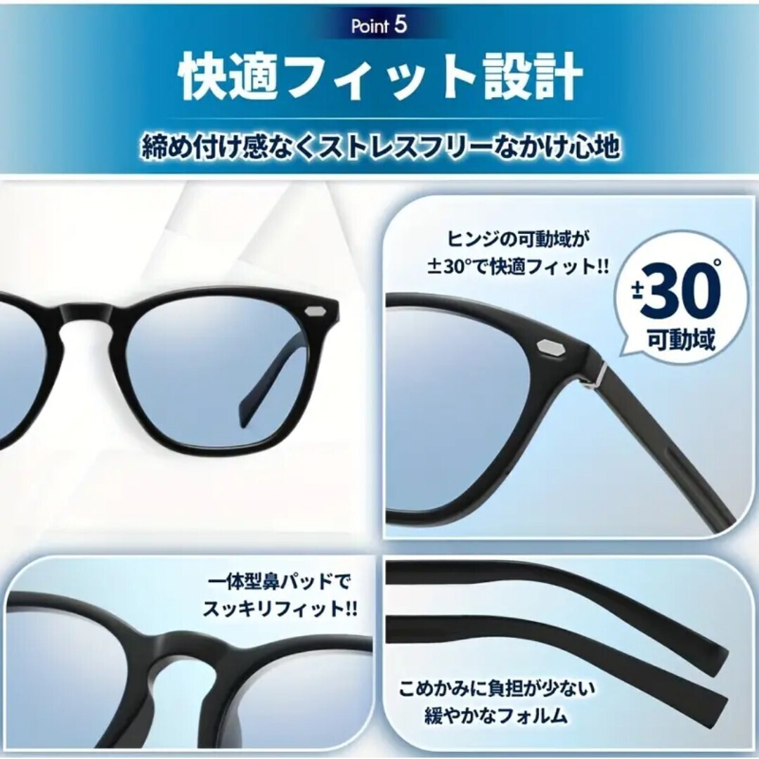 ヒンジ(丁番)が逆方向にも曲がるため、つけ心地が良くなります。高性能な機能です。