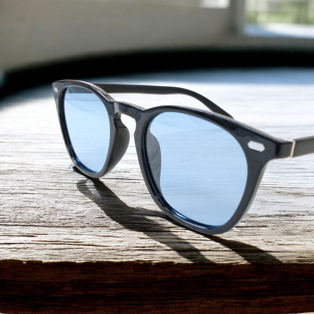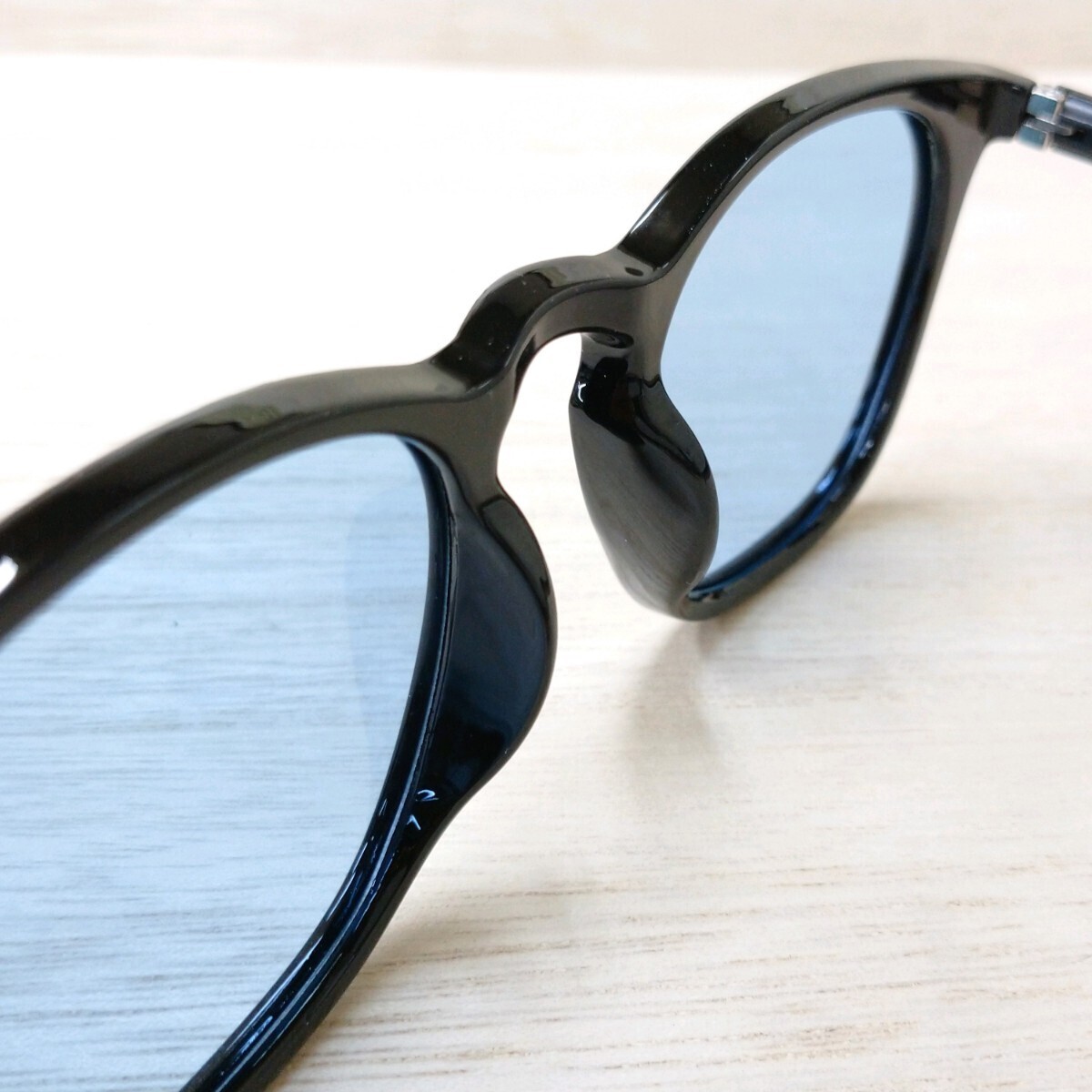 「ブルーレンズの偏光調光レンズは非常に珍しいです。お値打ち品ですよ!」