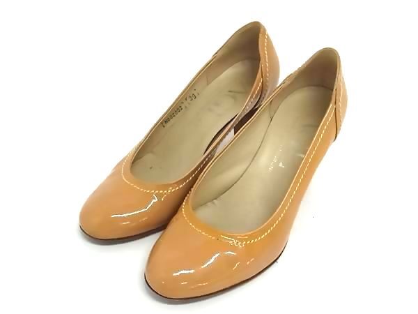 ■美品■AGL アッティリオジュスティレオンブルーニ パテントレザー ヒール パンプス サイズ39(約26cm) 靴 シューズ ブラウン系 DJ9353