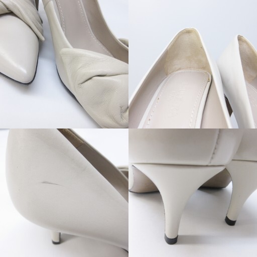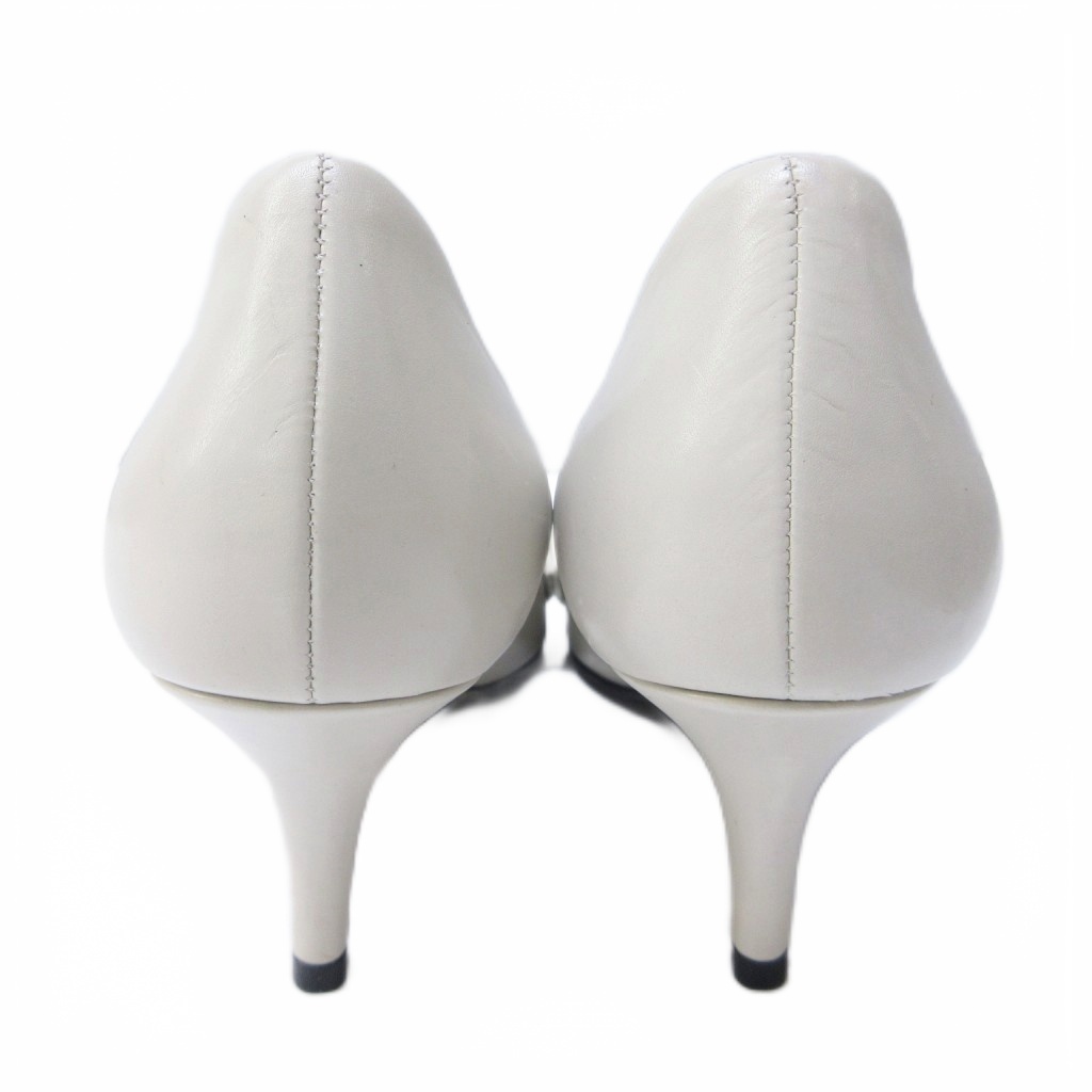 ポールカ PAULE KA パンプス リボンモチーフ レザー ポインテッドトゥ ハイヒール 38 約25cm アイボリー 系 IBO85 レディース