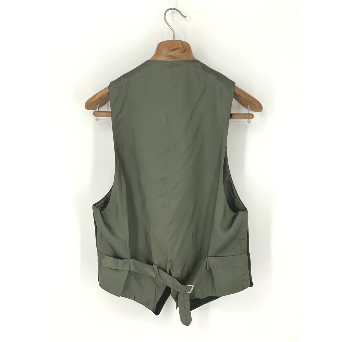 A8309/極美品 春夏 EMPORIO ARMANI エンポリオアルマーニ ウール ロゴ刺繍 ベスト ジレ 46REG S程 緑/イタリア製 メンズ スーツ用 ビジネス
