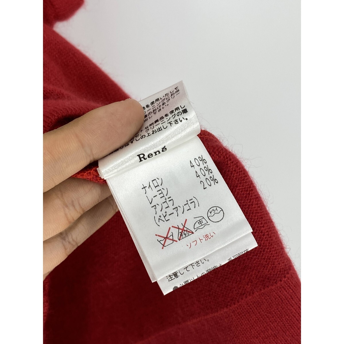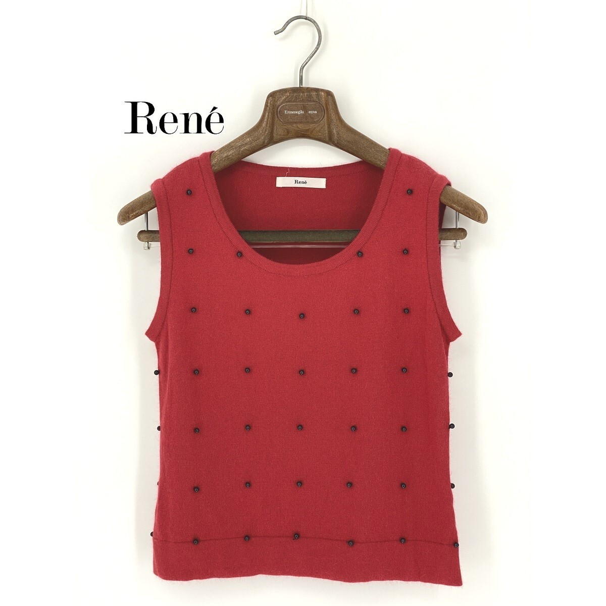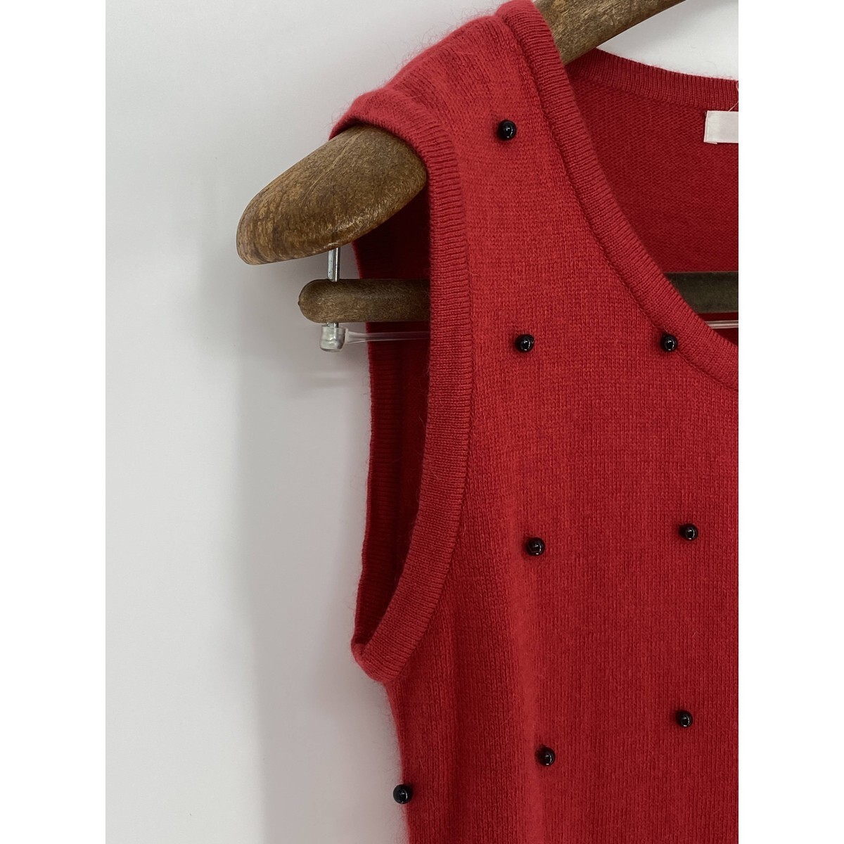 B0085/極美品 Rene ルネ アンゴラ 起毛 装飾付き クルーネック ノースリーブ ニット リブ セーター ベスト ジレ 36 M 赤 レディース