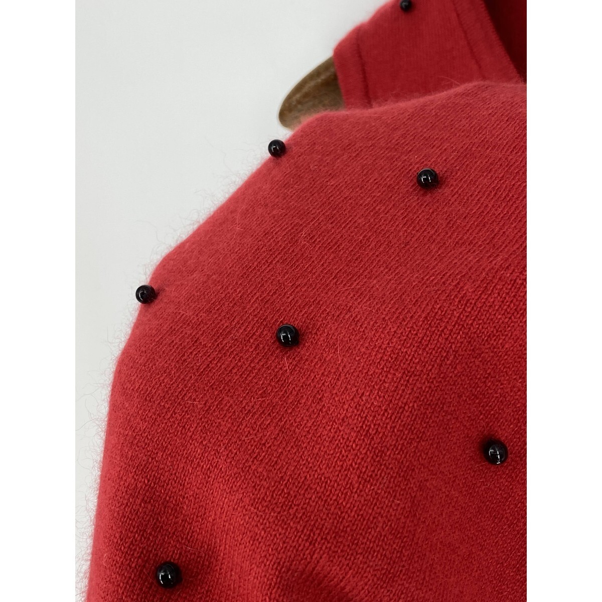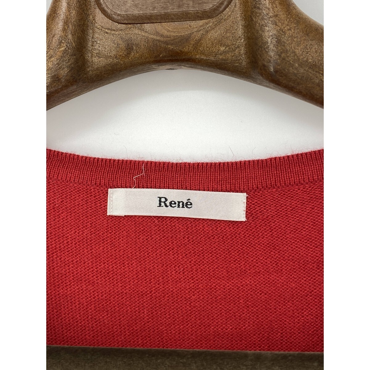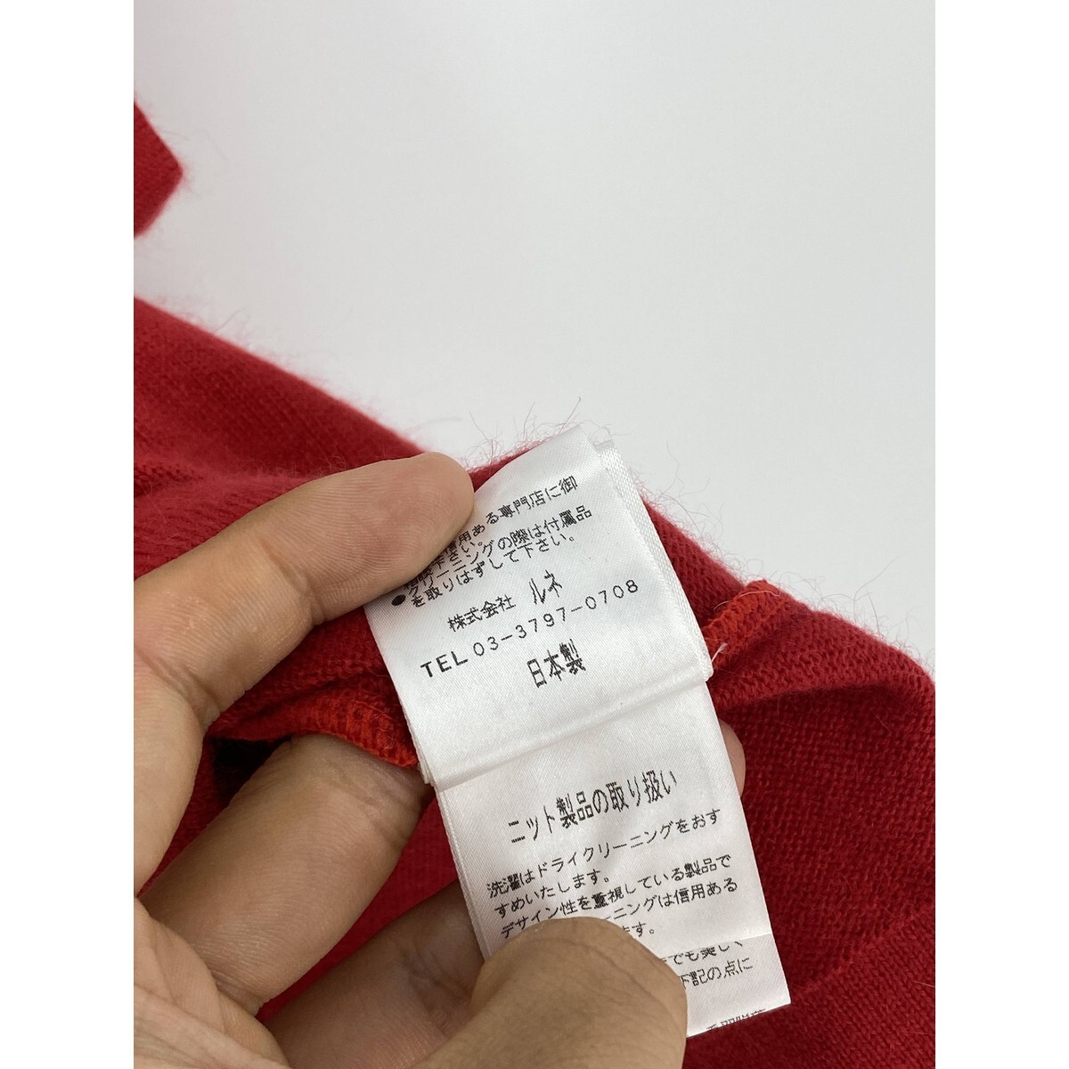 B0085/極美品 Rene ルネ アンゴラ 起毛 装飾付き クルーネック ノースリーブ ニット リブ セーター ベスト ジレ 36 M 赤 レディース