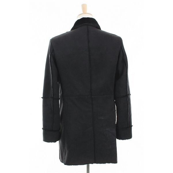 A4397/秋冬 HIGH STREET ハイストリート 起毛 ボア ムートン風 スエード ロング ステンカラーコート L 黒/メンズ トルネードマート