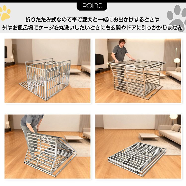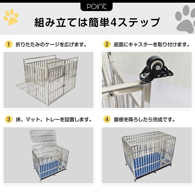 送料無料 犬用ケージ 大型犬 ケージ 犬小屋 頑丈 ゲージ 大型犬ゲージ キャスター付き ステンレス トレー 脱走防 組立簡単 訓練 pt088h-150