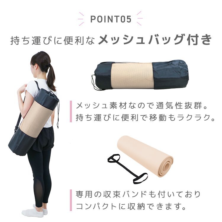 優れたクッション性を持ち、高耐久なNBR素材を使用。 関節や骨への負担を軽減し快適なヨガ時間をサポートします! 特殊エンボス加工により滑りにくく、ポーズ中の安定感が抜群! 湿気や汗をかいても滑りにくいため、安心して集中してヨガに取り組めます。 また、水に強い素材なのでタオルで拭くだけでお手入OK♪ \その他、おすすめポイント/ ・床からのひんやり感をカット ・床や畳の保護、騒音対策に◎ ・ロングサイズでゆったりストレッチできる ・オリジナルロゴ入り 軽くて持ち歩きしやすい専用のメッシュバッグ付き♪ これによりスタジオやアウトドア等、何処でも気軽にヨガを楽しめます! 【商品詳細】 サイズ:(約)180×60cm 厚さ:(約)10mm 重量:(約)1.2kg カラー:ハニーミルクティ 素材:NBR (ニトリルゴム) 付属品:メッシュバッグ、ゴムバンド (ヨガ ホットヨガ ピテラス ストレッチ トレーシーメソッド 10mm 人気 おすすめ WEIMALL) |