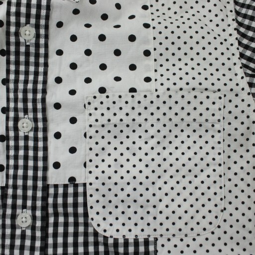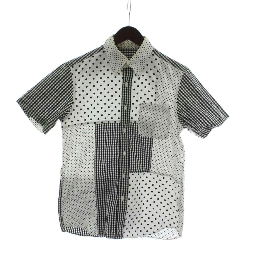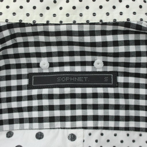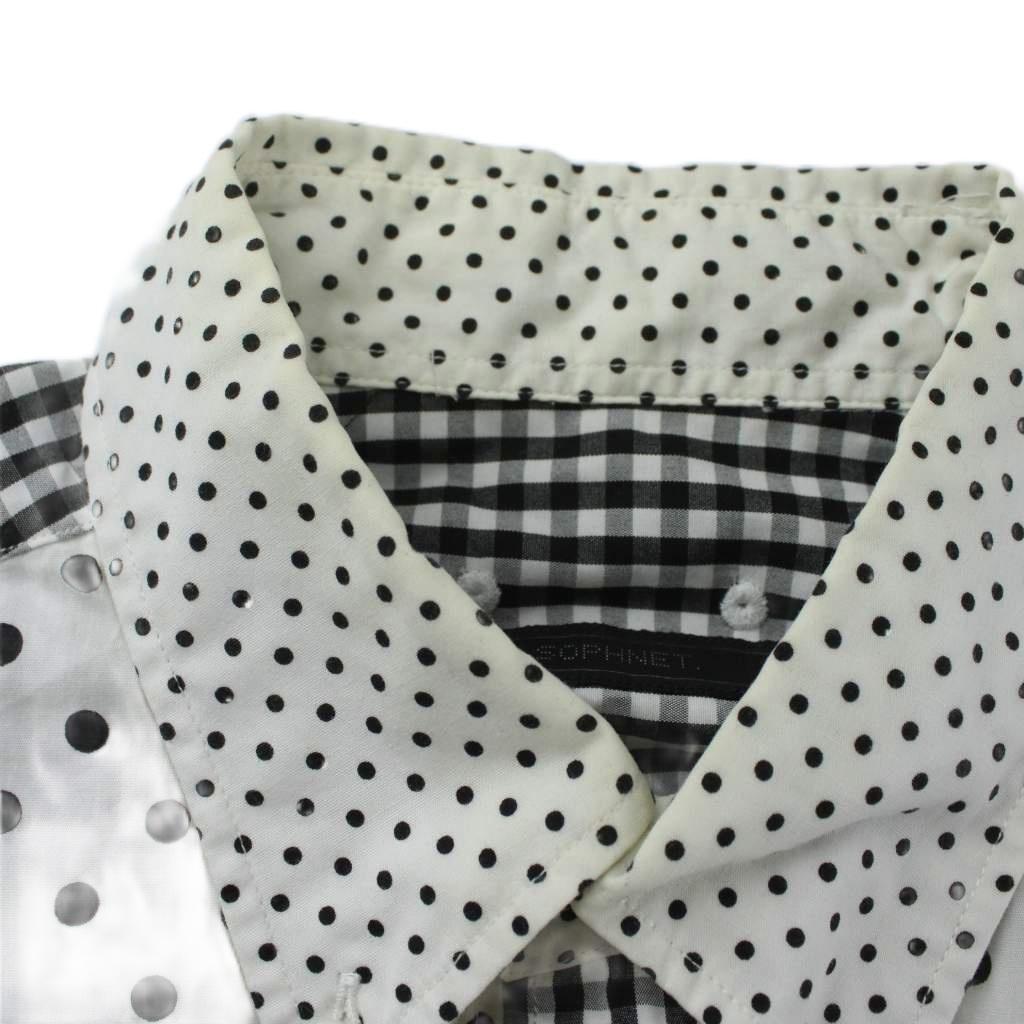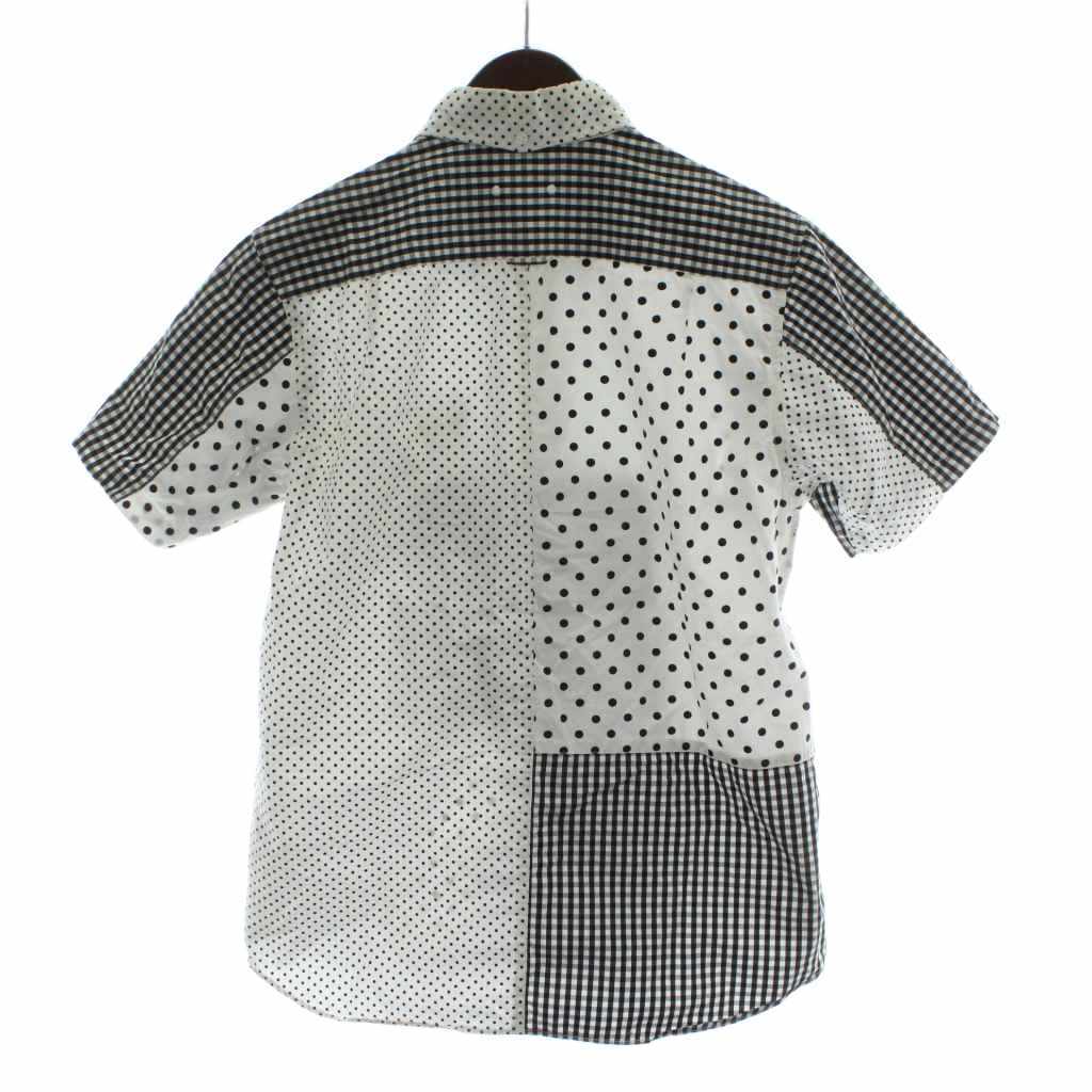 ソフネット SOPHNET. PATCH WORK REGULAR COLLAR SHIRT 半袖シャツ S 白 ホワイト ブラック パッチワーク ポルカドット 切替