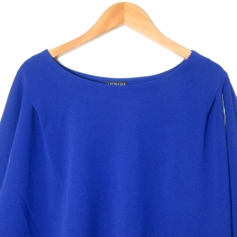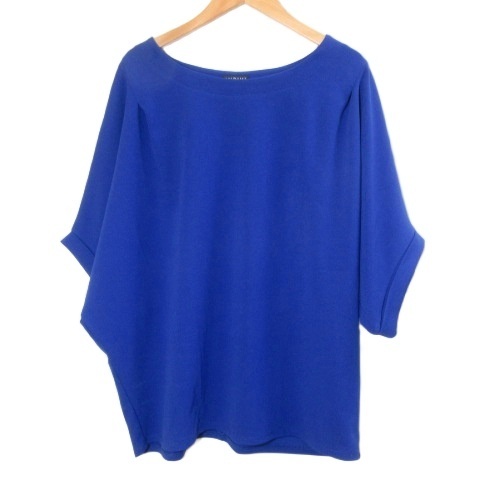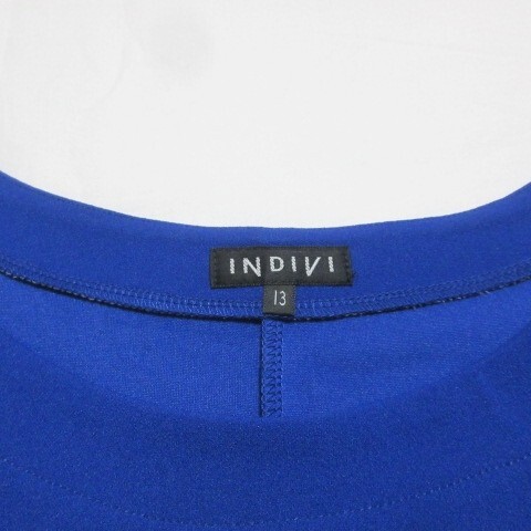 インディヴィ 大きいサイズ ドルマンスリーブフォルムトップス ブラウス 19014 ウォッシャブル 半袖 プルオーバー 13 LL相当 青 ブルー