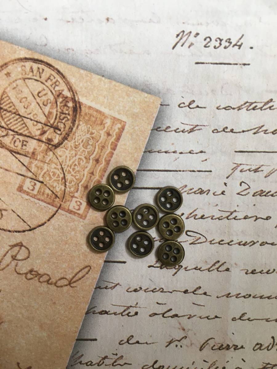 ブロンズ色 4つ穴ボタン約6mm 20個 極小 小さめ ハンドメイド材料 デコ材料 ドール用 人形用 ミニチュア用 194