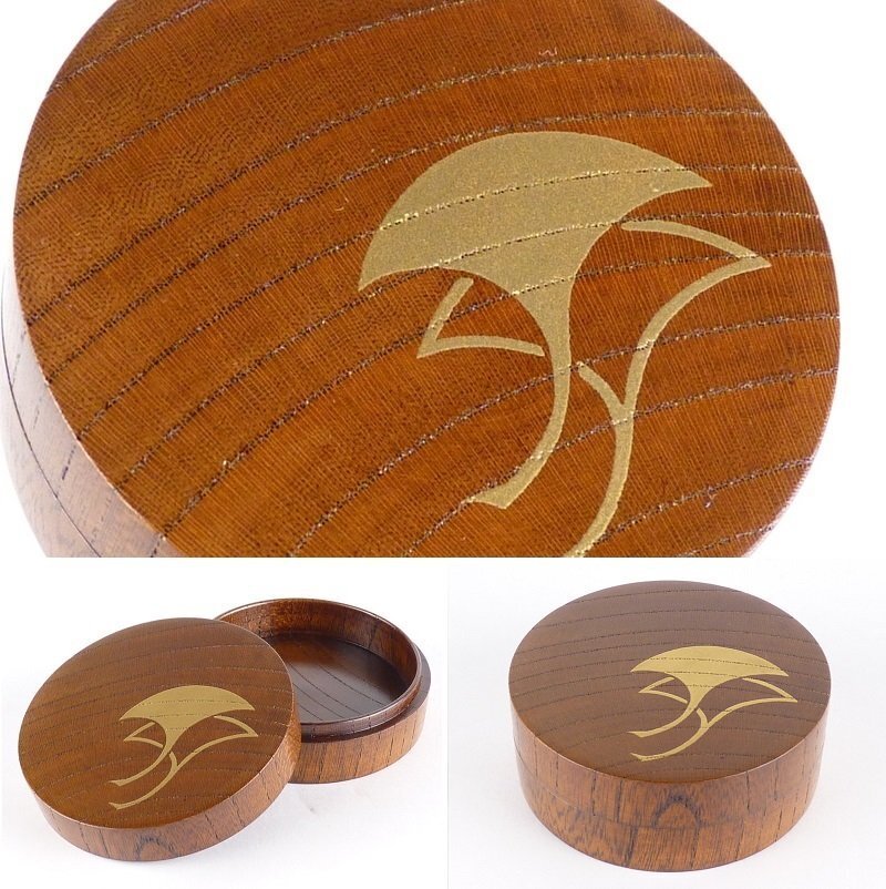 【扇屋】銀杏蒔絵 木地 香合 桐箱 茶道具 tg1