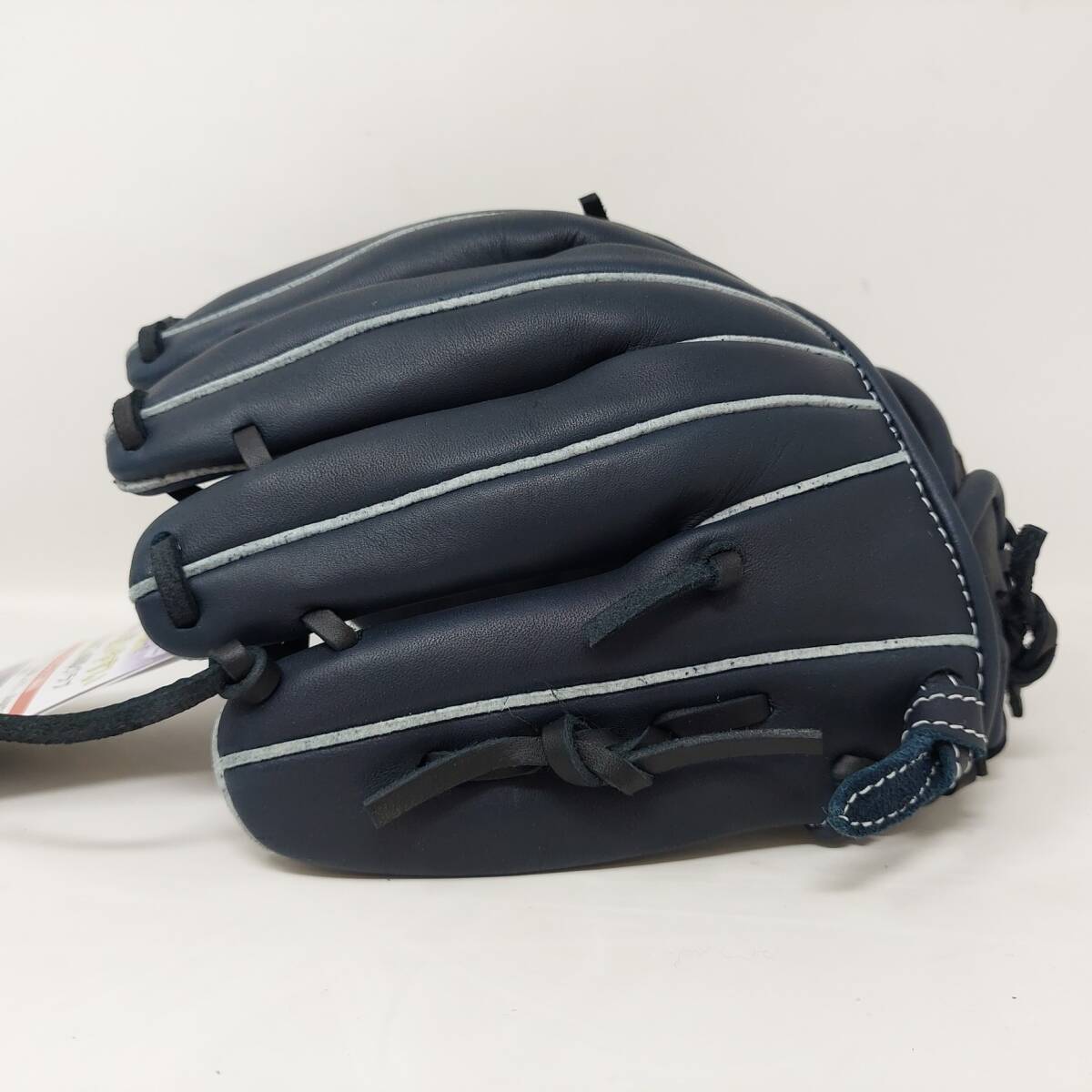 柔らか加工したレザーと握りやすいバンド構造に加え、薬指リング付きで楽にボールをキャッチできる機能性満載のグラブ。