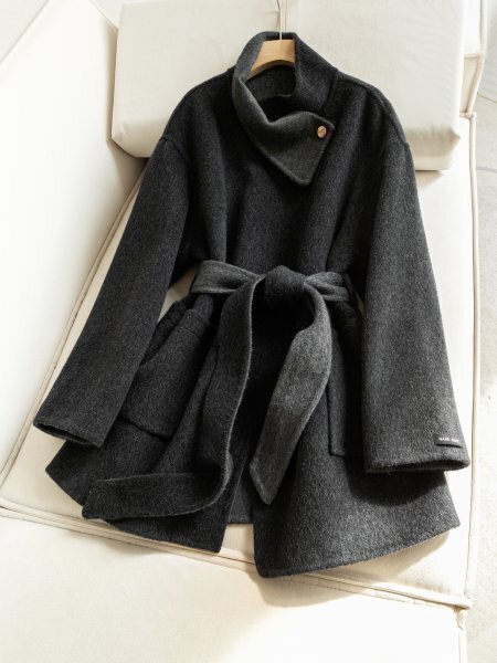 存在感のある襟デザインが特徴で、エレガントで大人っぽい印象を与えてくれます。リボンベルトのデザインは自由に調節でき、ウエストラインを美しく引き締め、女性のエレガントな曲線を際立たせます。ミドル丈が太ももの大部分を効果的にカバーし、秋冬の冷たい風から身体を守ってくれます。両サイドの大きめポケットは、ちょっとした外出やお買い物にも便利。