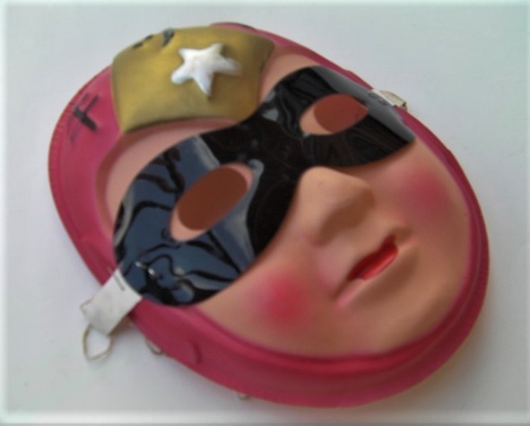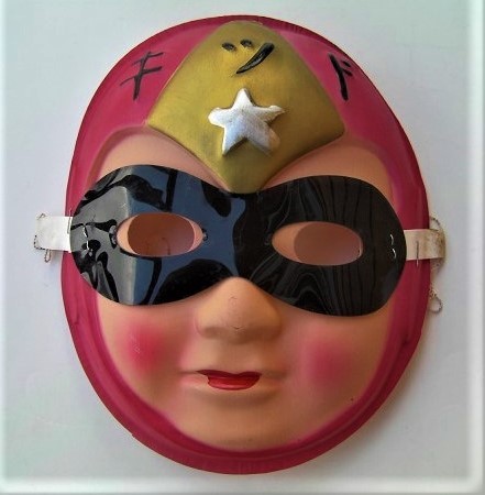 昭和30年代に作られたセルロイド製のキャラクターお面『ナショナルキッド』です。