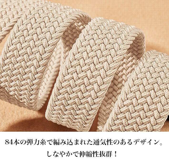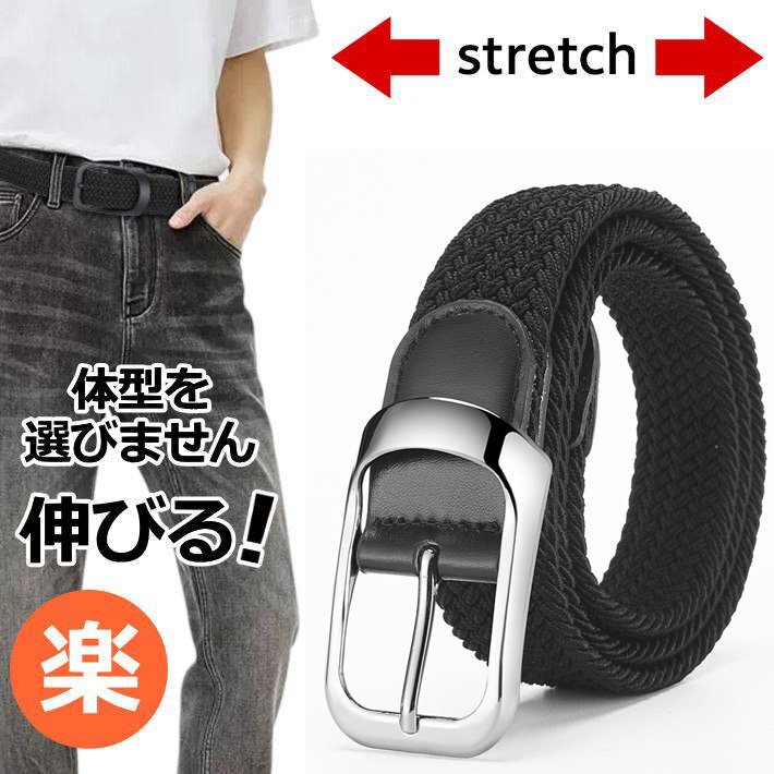 カジュアルベルト 学生ベルト メンズ レディース 35mm 105cm 伸縮 カジュアル シンプル おしゃれ 7986653 シルバー×ブラック 新品