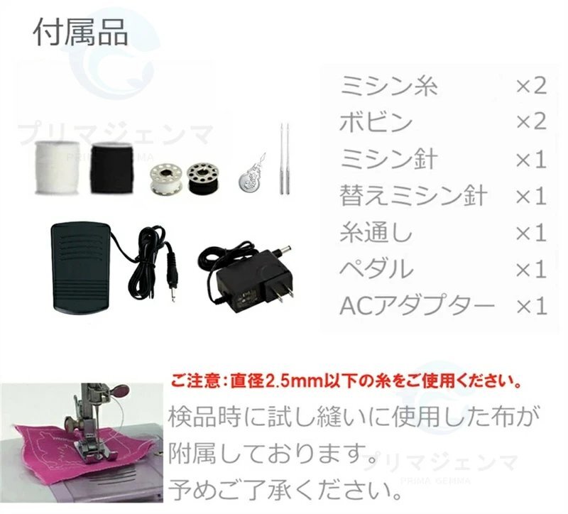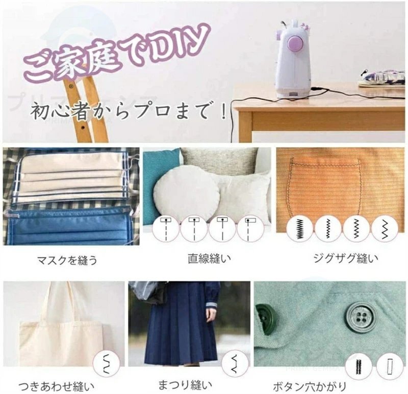 ミシン コンパクト 家庭用電動ミシン 初心者利用可 操作簡単 12種縫い目 返し縫い機能付 スピード調整可 LED手元ランプ 男・女・大人/婦人向け 趣味・手作り・DIY用ミシン 縫製用ビン/針/糸/はさみなど42セット付