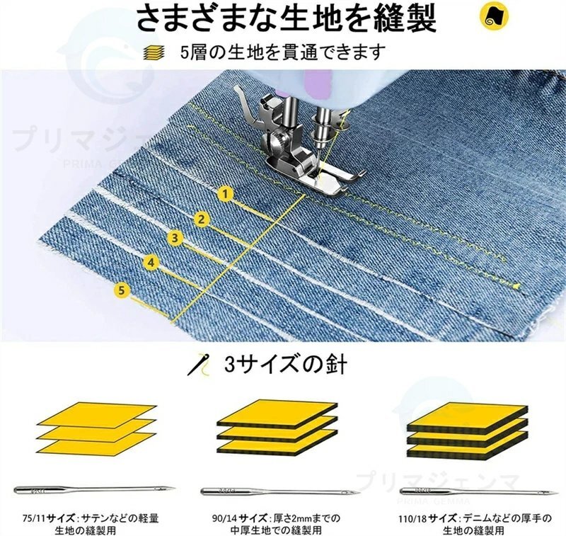 ●付属品の針は薄い布が縫えるだけですが、もっと厚くなる布の種類を縫いたいなら、ミシン用の針「16番」が購入する必要です。