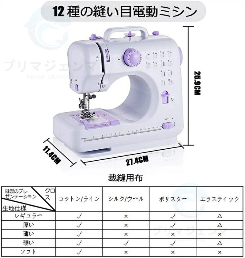 ミシン コンパクト 家庭用電動ミシン 初心者利用可 操作簡単 12種縫い目 返し縫い機能付 スピード調整可 hw1329