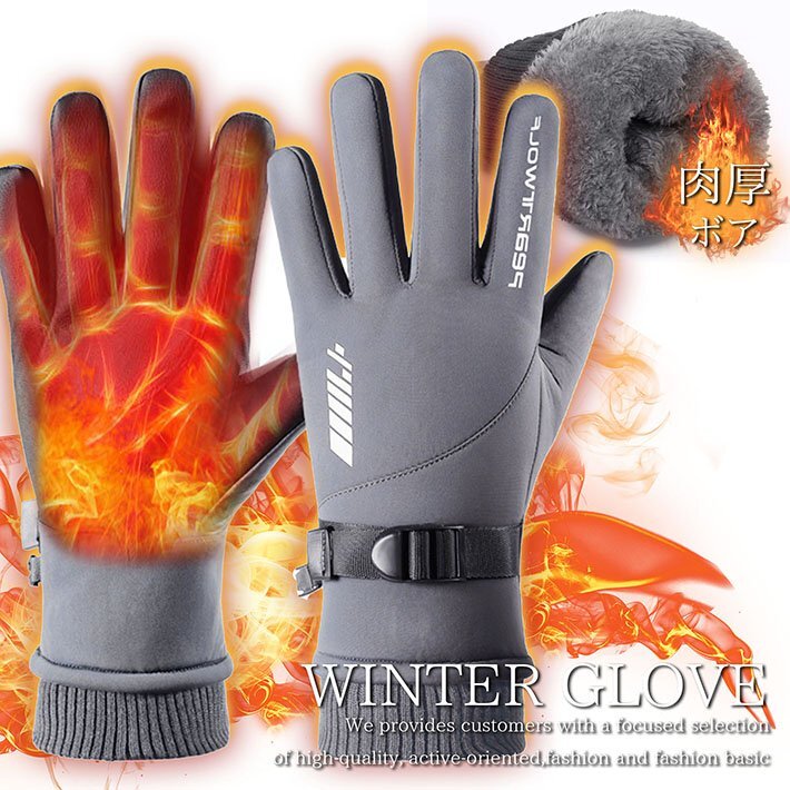 手袋 メンズ レディース 防寒 秋冬 裏起毛 暖かい 男女兼用 保温 柔らかい 軽量 多機能 アウトドア 通勤 7986889 グレー 新品