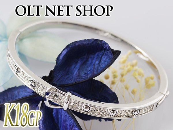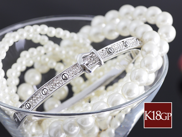 バングル ブレスレット レディース シルバー 18金 18kコーティング ホワイトゴールド ビス ベルト 女性 / K18GP CZダイヤ シルバーバングル