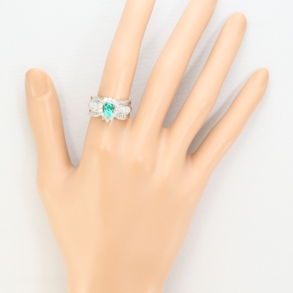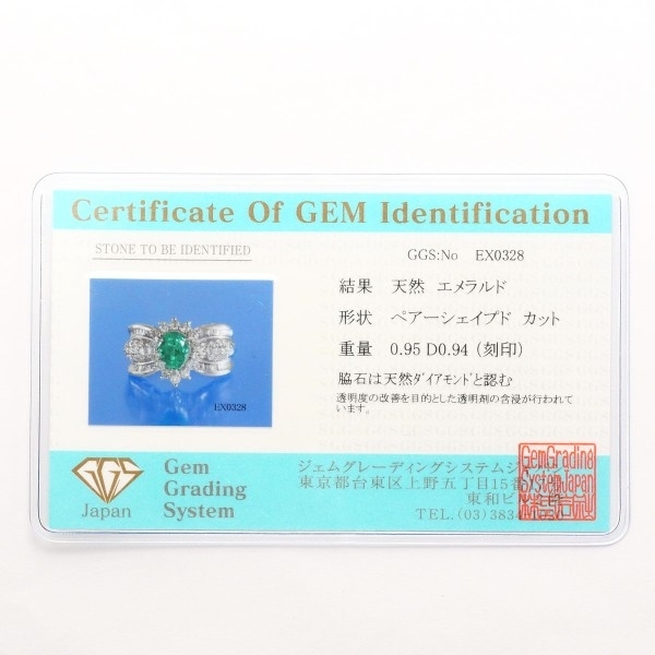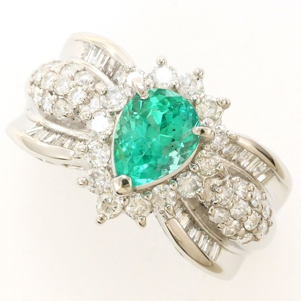 | PT900 リング 指輪 11.5号 エメラルド 0.95 ダイヤ 0.94 カード鑑別書 総重量約9.6g 中古 美品 送料無料 | |