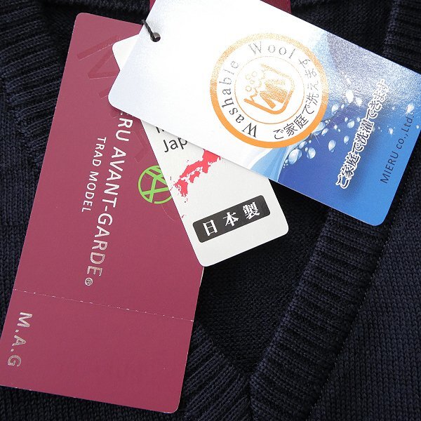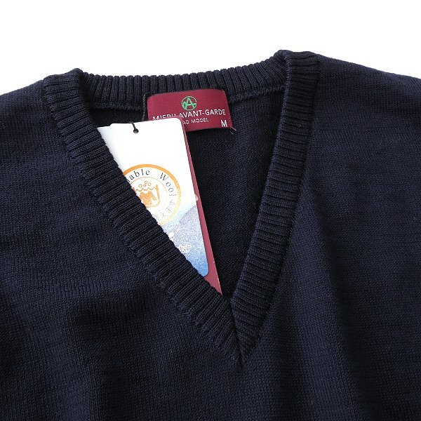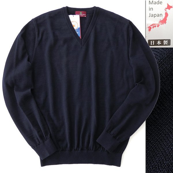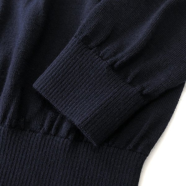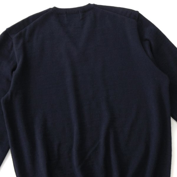 日本製 新品 未使用 紙タグあり Lサイズ 胸囲96~104 ※写真は別サイズを使用している場合がございます※ ※商品に記載されたサイズ・寸法です※ 肩幅44cm 身幅56cm 袖丈61cm 着丈67cm ※伸縮性のある素材の為、多少の誤差が生じる場合がございます※ 毛100% ダークネイビー |