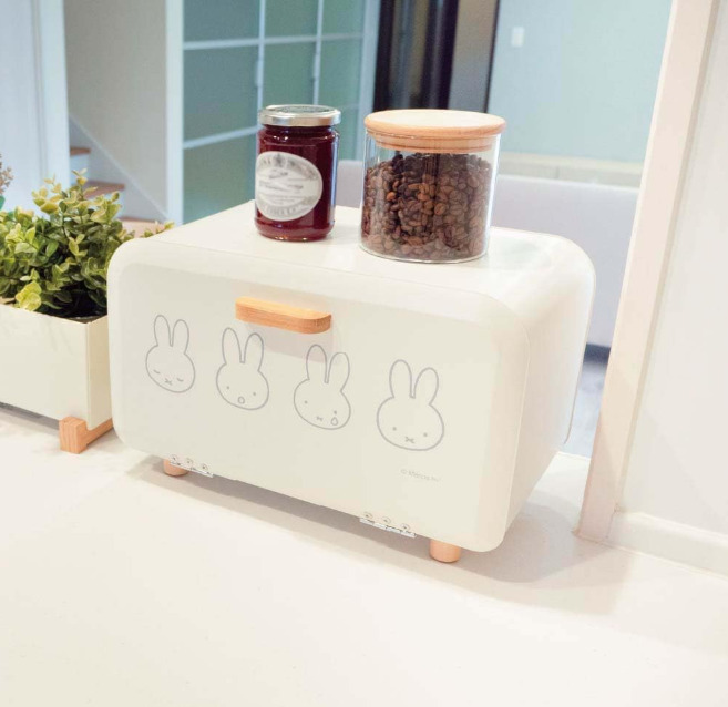 オカトー miffy ミッフィー ブレッドケース パン 保存 M 幅35.5×高さ23.5×奥行23.5cm ナチュラルカラー 14 リットル マグネット付き お菓子 ジャム 小物 ブレッドボックス 収納BOX