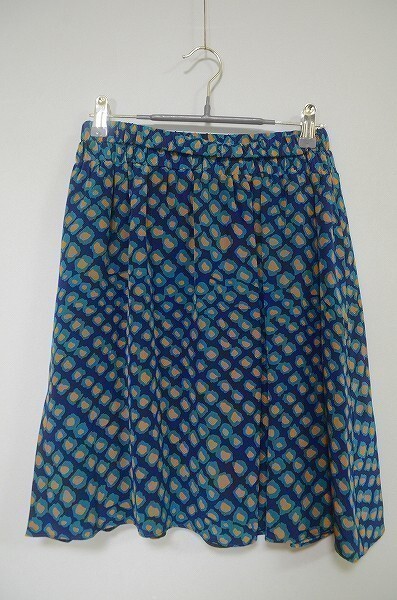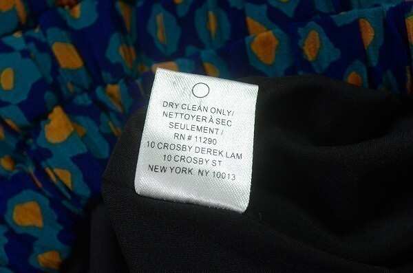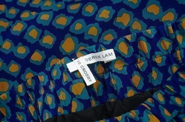 A2618/極美品 春夏 薄手 DEREK LAM 10CROSBY デレクラム シルク100% 総柄 フレア プリーツ ショート丈 ミニスカート サイズP 紺/レディース