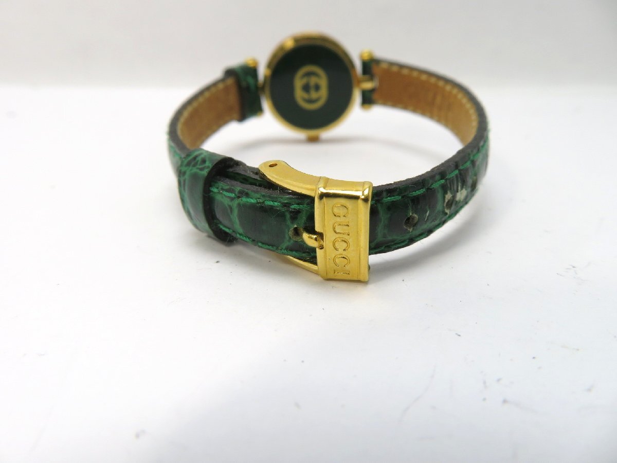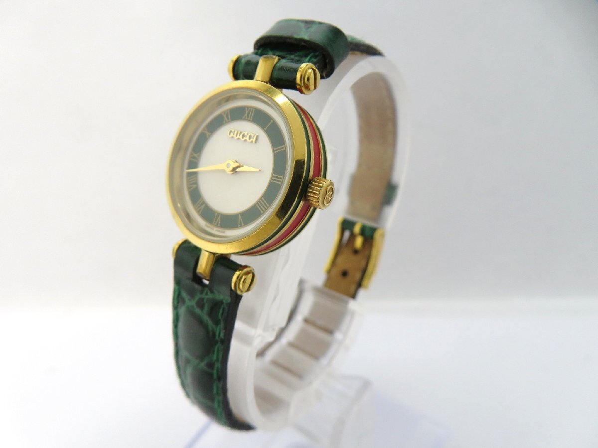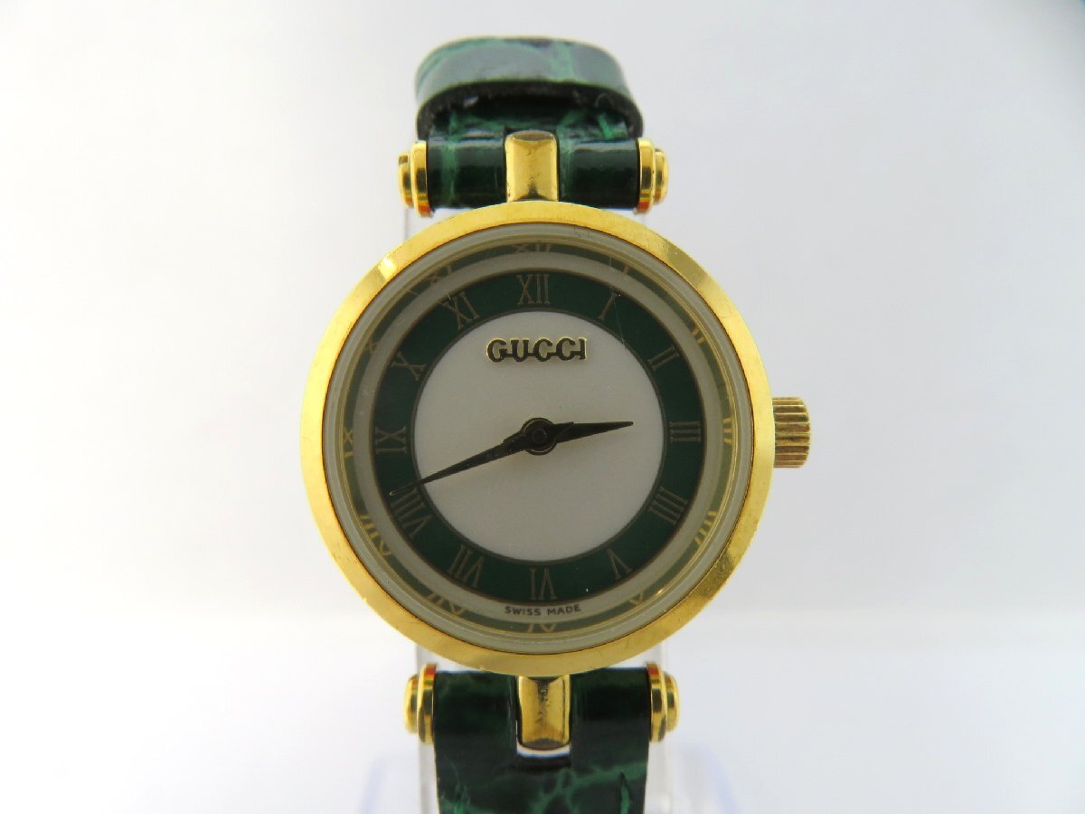 1円開始◆稼働◆ グッチ シルバー/グリーン クオーツ レディース 腕時計 AD33905