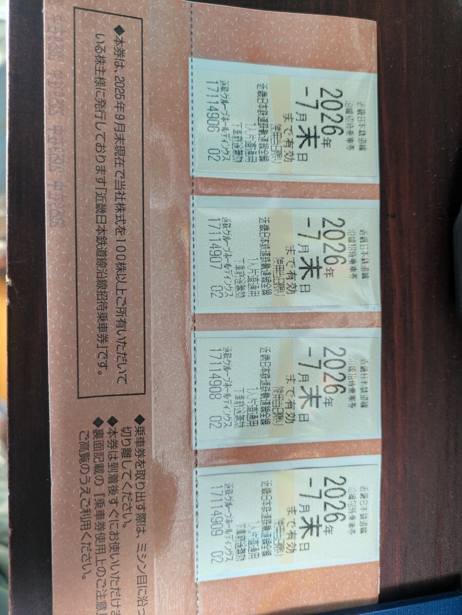 近鉄株主優待券です。乗車券プラス株主優待の冊子「未使用)のセットです。